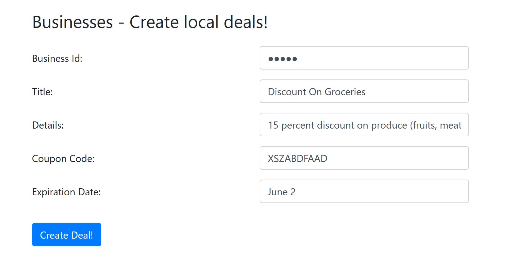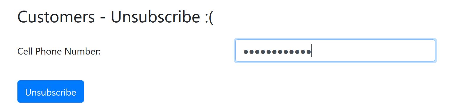Businesses: Businesses are able to register and add deals that customers can use at their organization. Once created, subscribed customers are sent a text message with information on the deal and business.