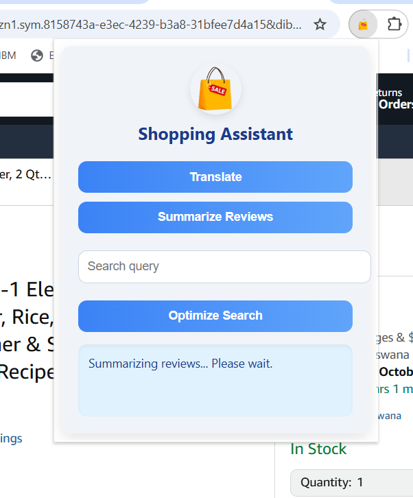 Shopping online can be overwhelming, especially when browsing international e-commerce sites. Product descriptions and reviews are often in multiple languages, and search queries may not always yield the best results. I wanted to create a client-side AI shopping assistant that helps users translate, summarize, and optimize their browsing experience — all while keeping their data private.