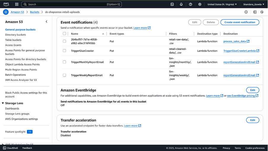- Data Lake & Storage: I use Amazon S3 as the foundation. There are separate buckets/folders for raw data, cleaned data, query results, and the final PDF reports. S3's event notification system is the catalyst for the entire workflow.