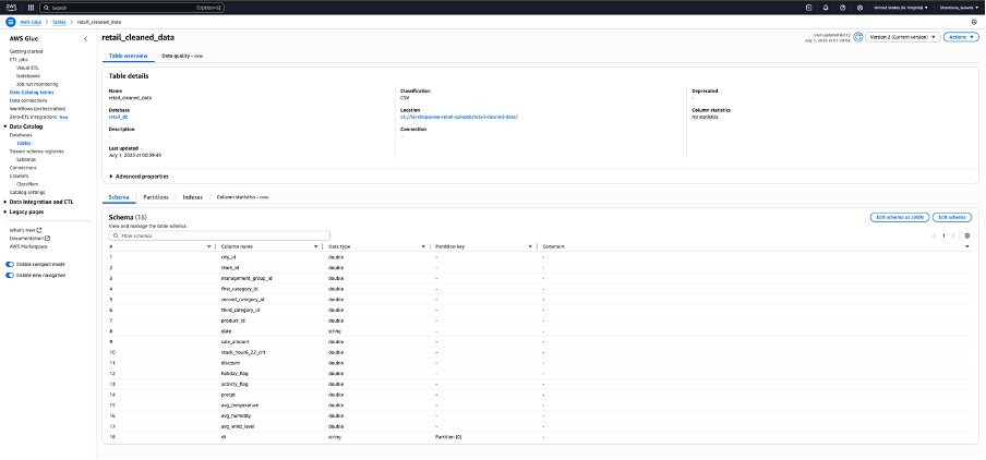 - Data Cataloging: AWS Glue (specifically, the Glue Crawler) is used to automatically infer the schema of my cleaned sales data and create a metadata table in the Glue Data Catalog. This makes the data instantly queryable.