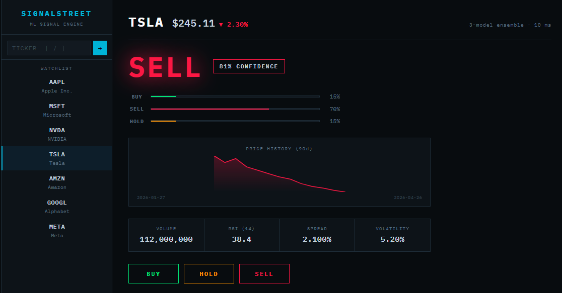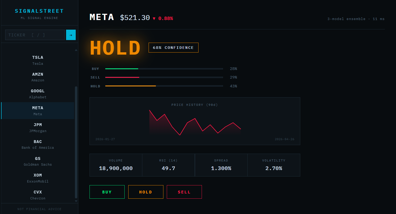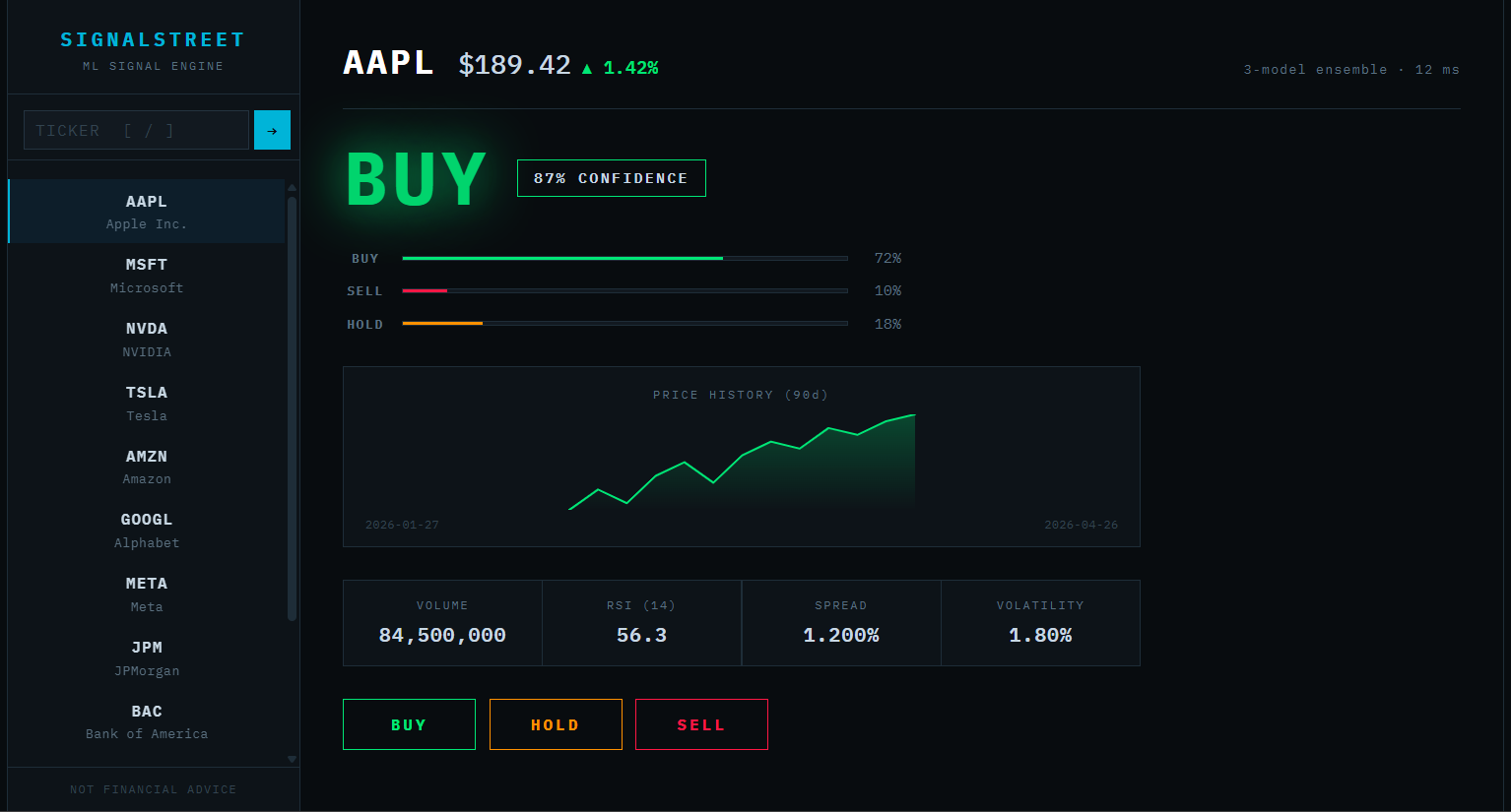 SignalStreet is a financial intelligence system designed to make stock prediction more reliable, transparent, and beginner-friendly.