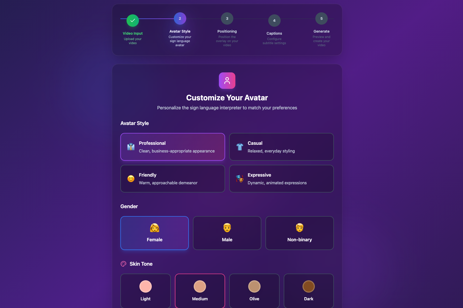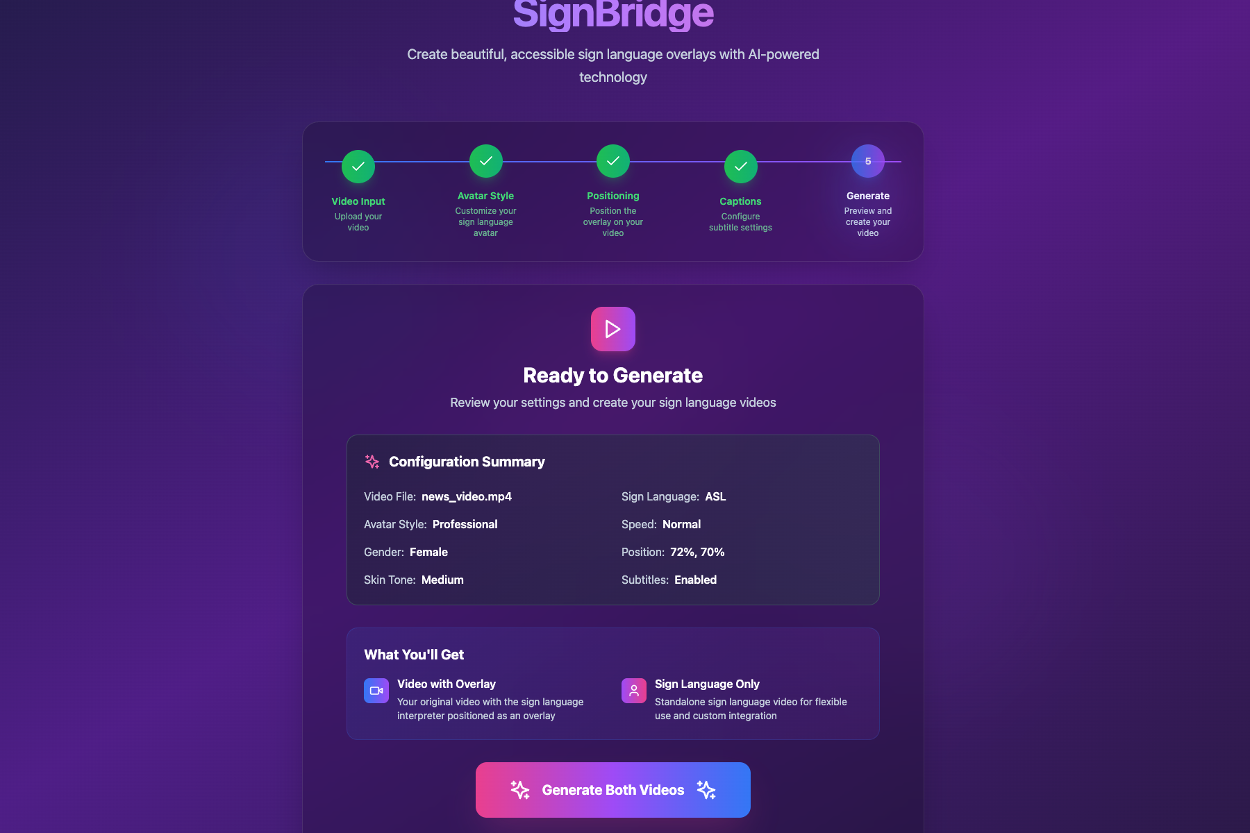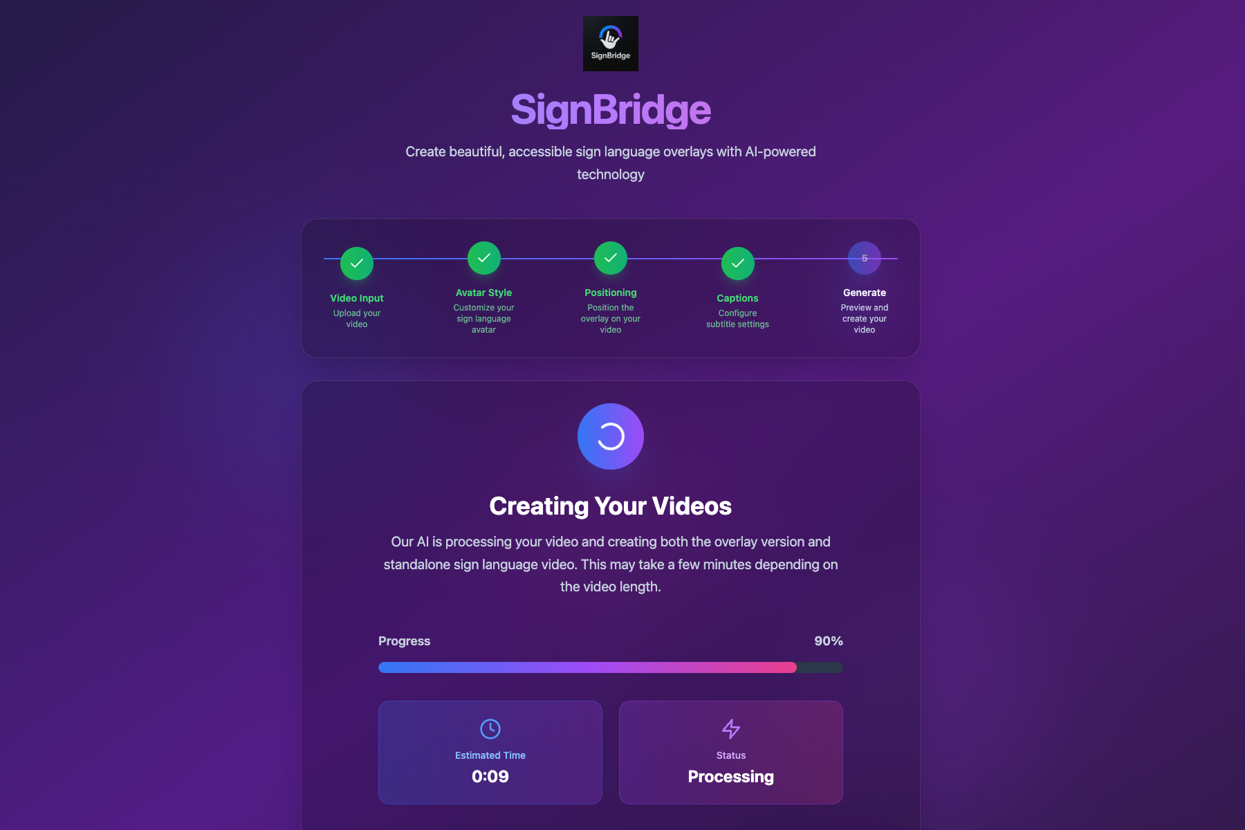 an AI-powered service that adds sign language overlays to videos, making them inclusive, expressive, and truly accessible.”