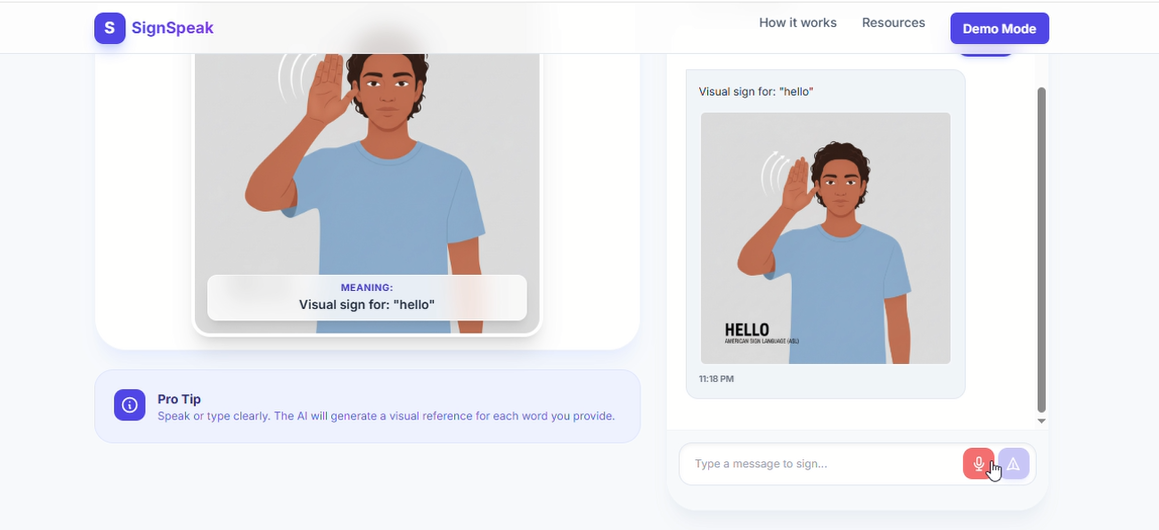 Communication is a fundamental human right, yet for the millions of people who rely on Sign Language, daily interactions with non-signers remain a significant challenge. We often see tools that translate speech to text, but very few that truly bridge the visual gap for the Deaf community in real-time. I was inspired to build SignSpeak to create a true two-way bridge. I didn't want just a translation tool; I wanted to build a conversation enabler that empowers Deaf users to be understood instantly and helps hearing users learn and communicate back visually. The goal was to make accessibility seamless, modern, and respectful.
