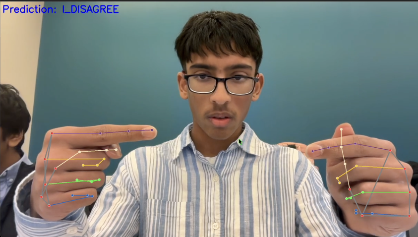 I've always thought how weird it must feel to be deaf, to not be able to hear the world around you, to hear your loved ones talking. That's why I made SignVerse, which is a live translating system that converts hand gestures into text. Obviously, due to hardware limitations and extreme difficulty, I could not use the entire 2000 phrase WLASL dataset. I instead settling for 8 common day-to-day phrases used by everyone.