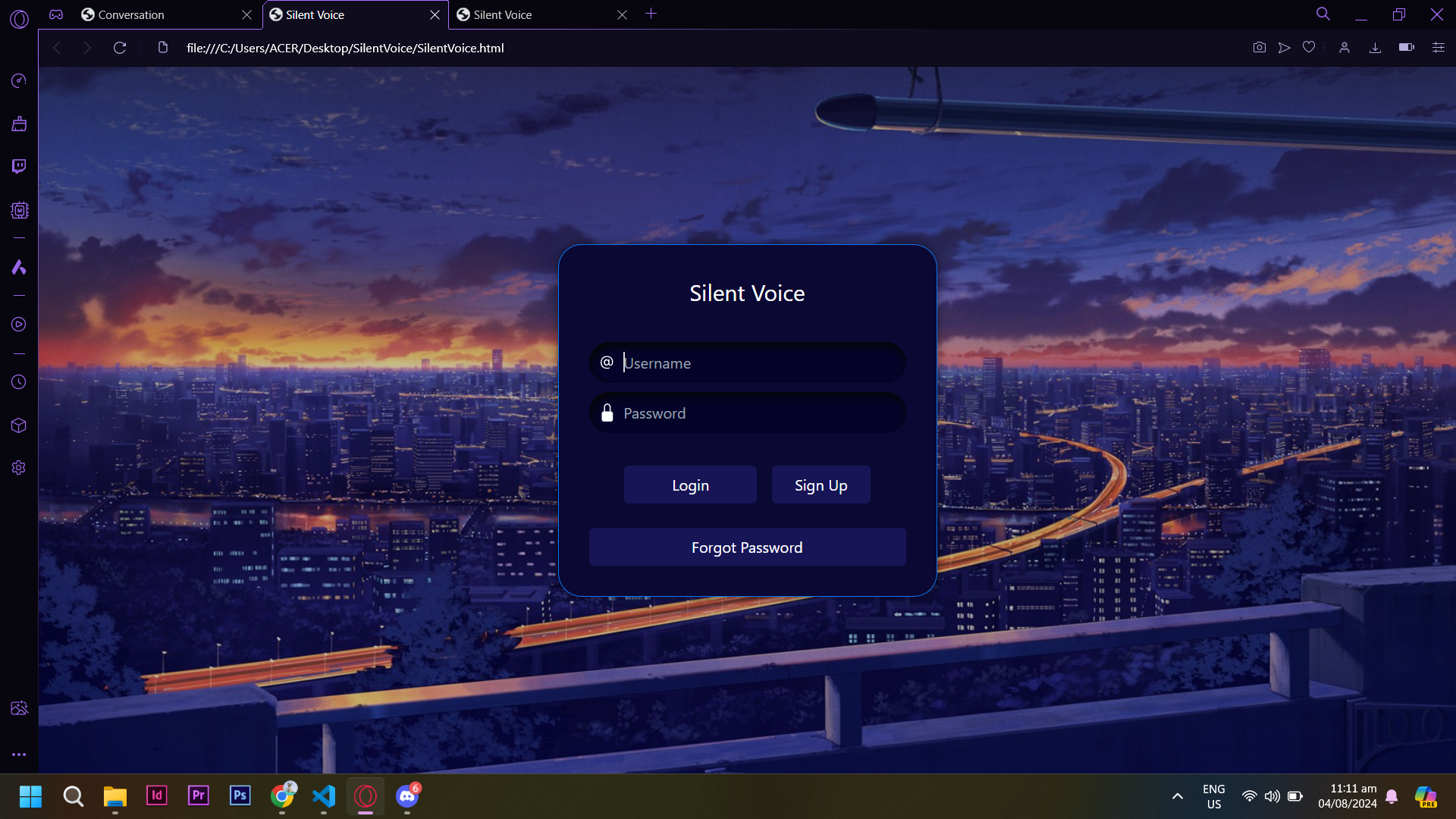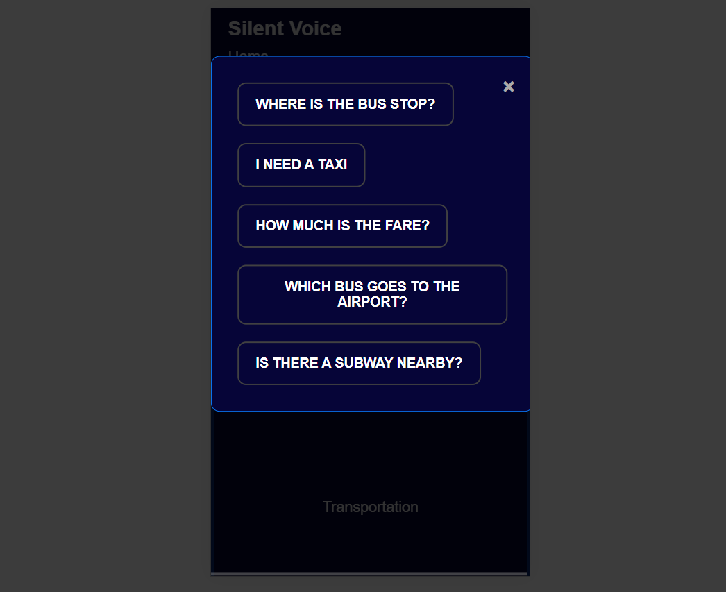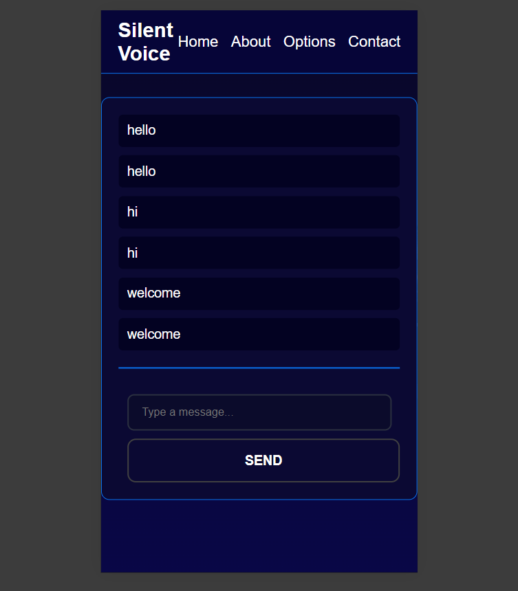 Silent Voice was built using HTML for structure, CSS for styling, and JavaScript for functionality. Countless hours fueled by coffee were spent debugging, refining, and testing to ensure a smooth user experience.