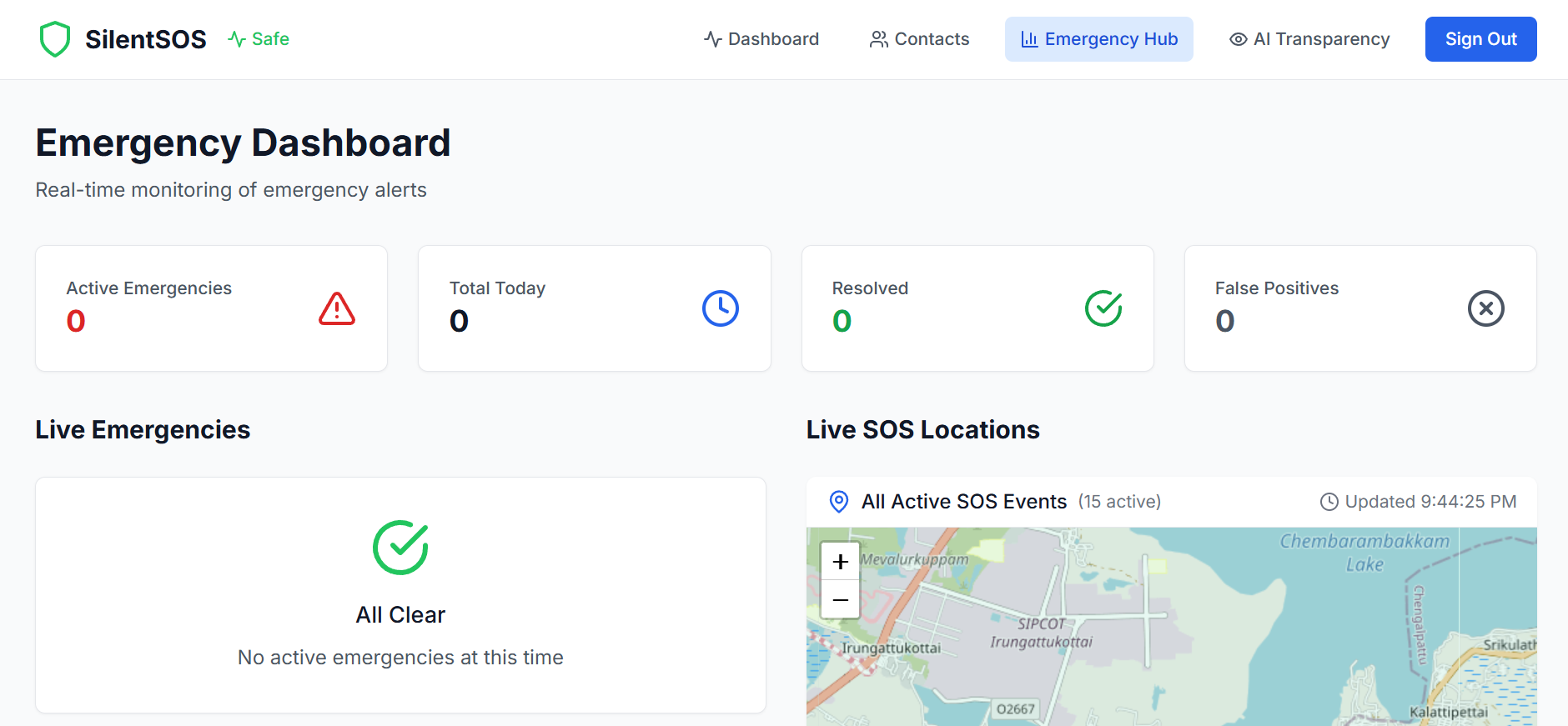Built a fully functional automatic SOS system without relying on manual triggers Used only real device sensor data, with no simulations Designed transparent, explainable detection logic suitable for real-world use Created a live emergency dashboard with real-time map visualization Most importantly, the system prioritizes honesty and reliability over exaggerated claims.