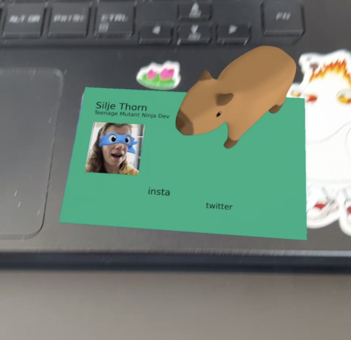 Inspiration Ninja Capybaras What it does How we built it Challenges we ran into Accomplishments that we're proud of What we learned What's next for Silje Thorn Built With a-frame Try it out hello1-default-emeadevroadshow.dev.8thwall.app