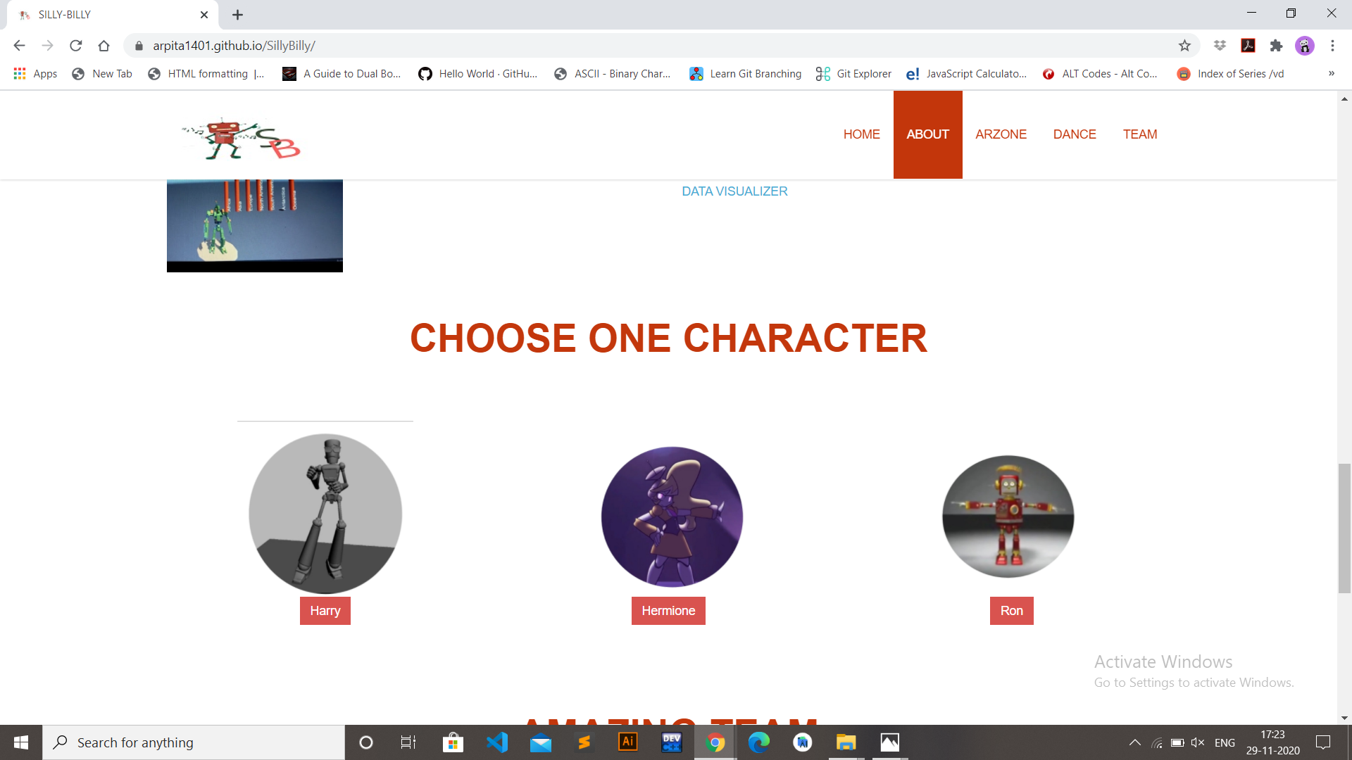 Silly Billy is a website, where we are trying to play with music and animation. We have three animations. You can choose one and proceed further. Next, you need to give access to the microphone, to record the song. The file will be saved. Then from the saved file beats value will be extracted and according to bpm, the speed of the animated video will change.