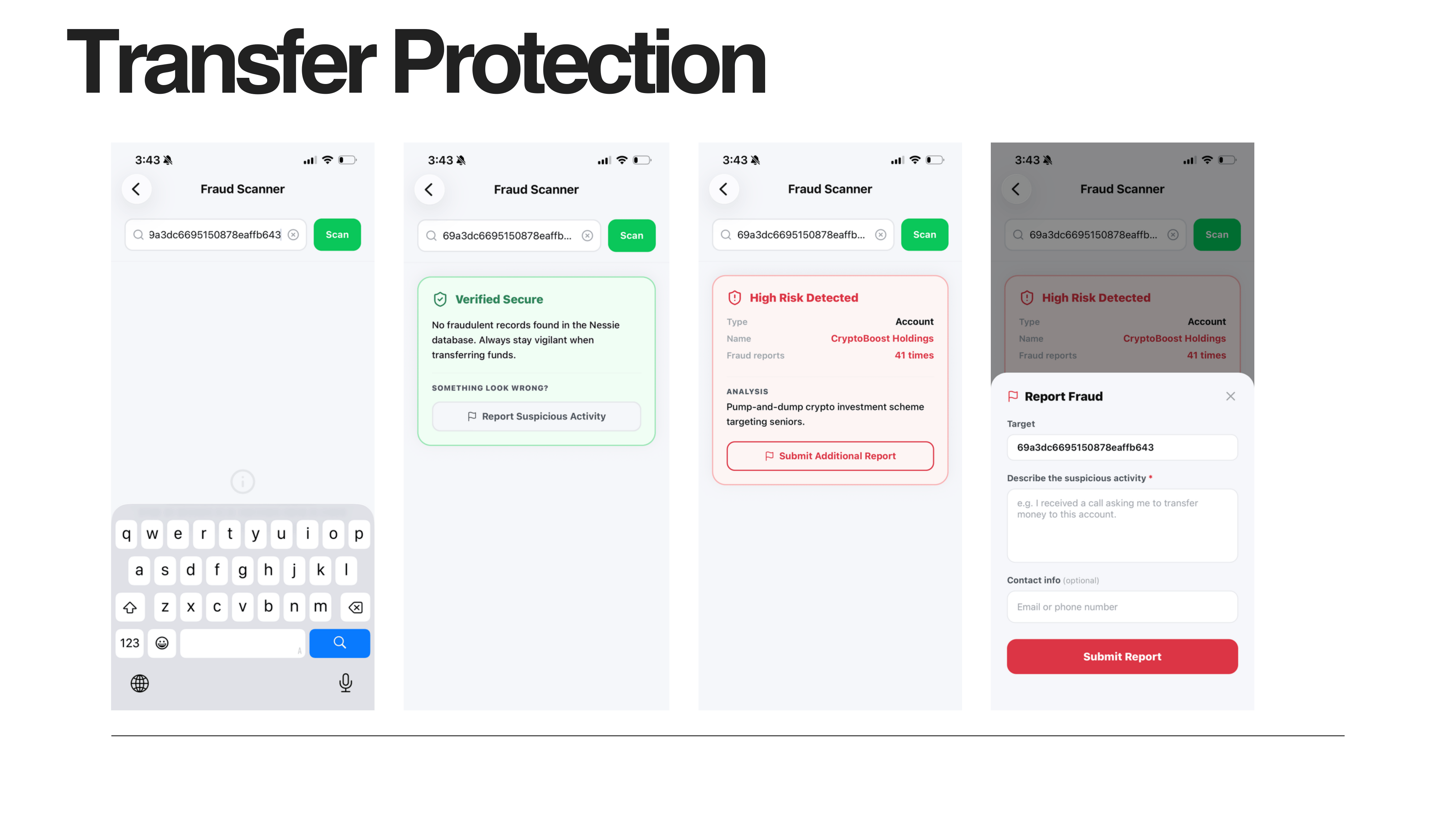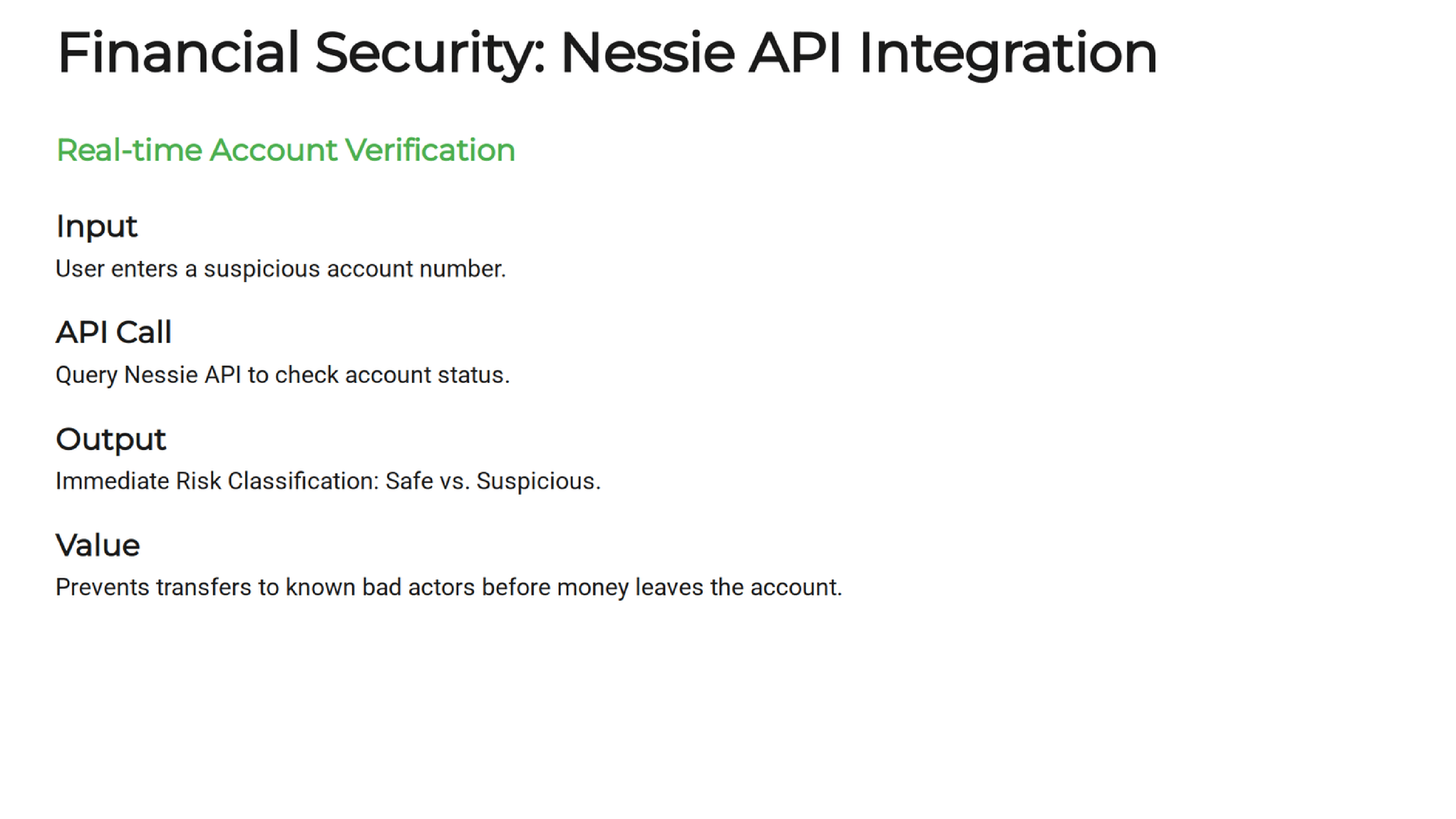 - Fraud account verification before transfer