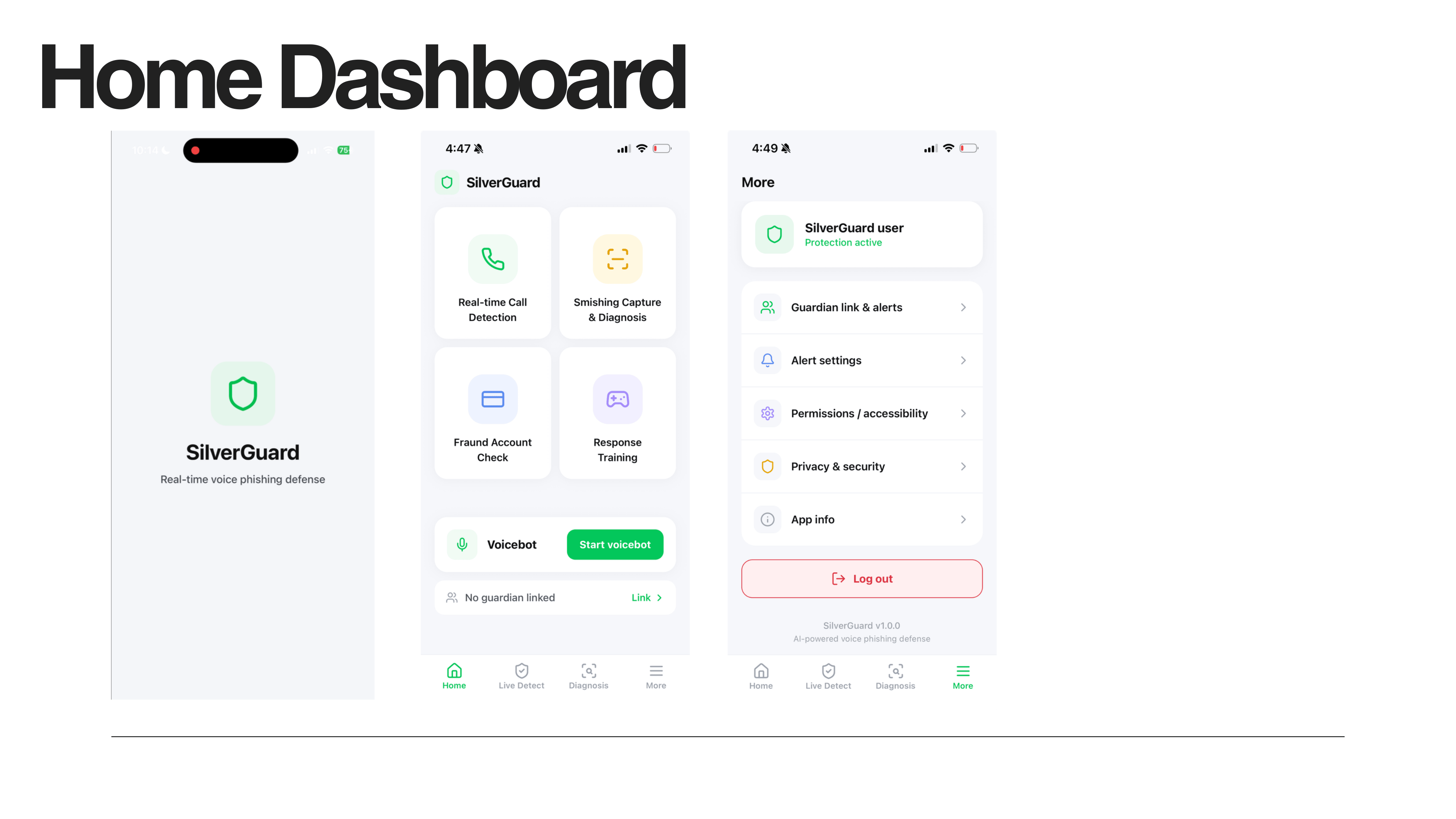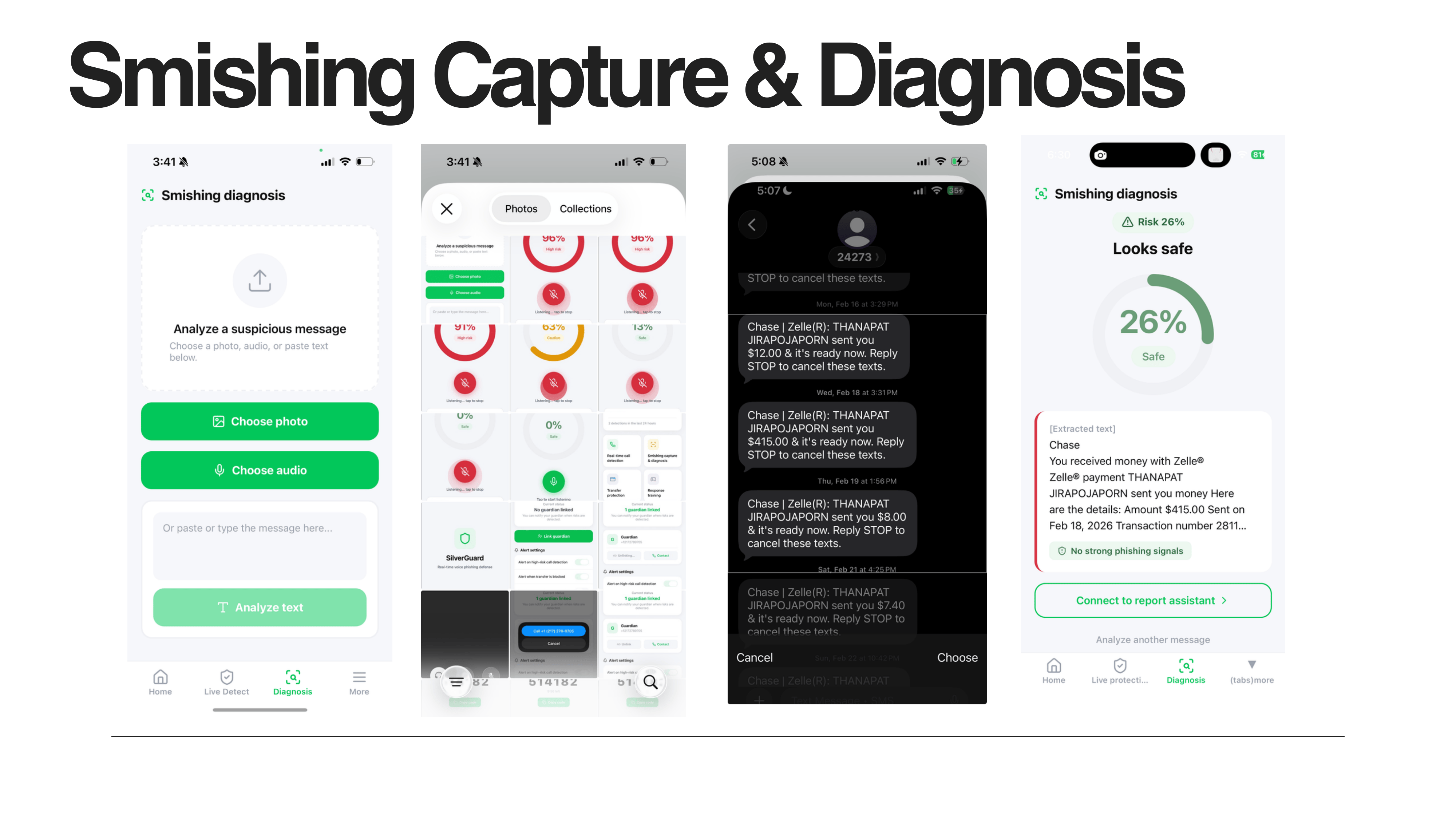 Live voice detection. Automatic SMS interception. Fraud account verification. Guardian alerts.