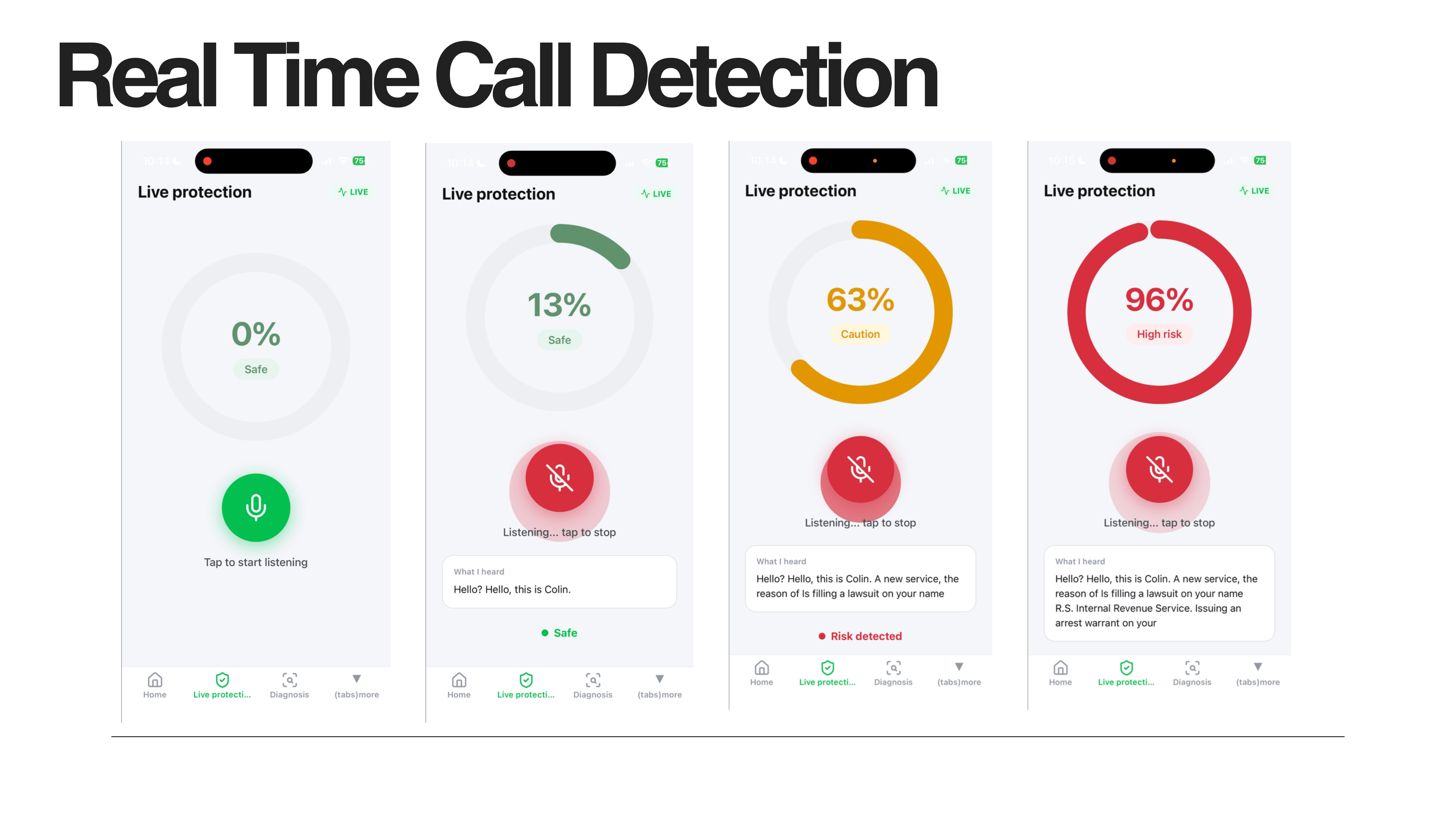 - Live AI scoring during active scam calls