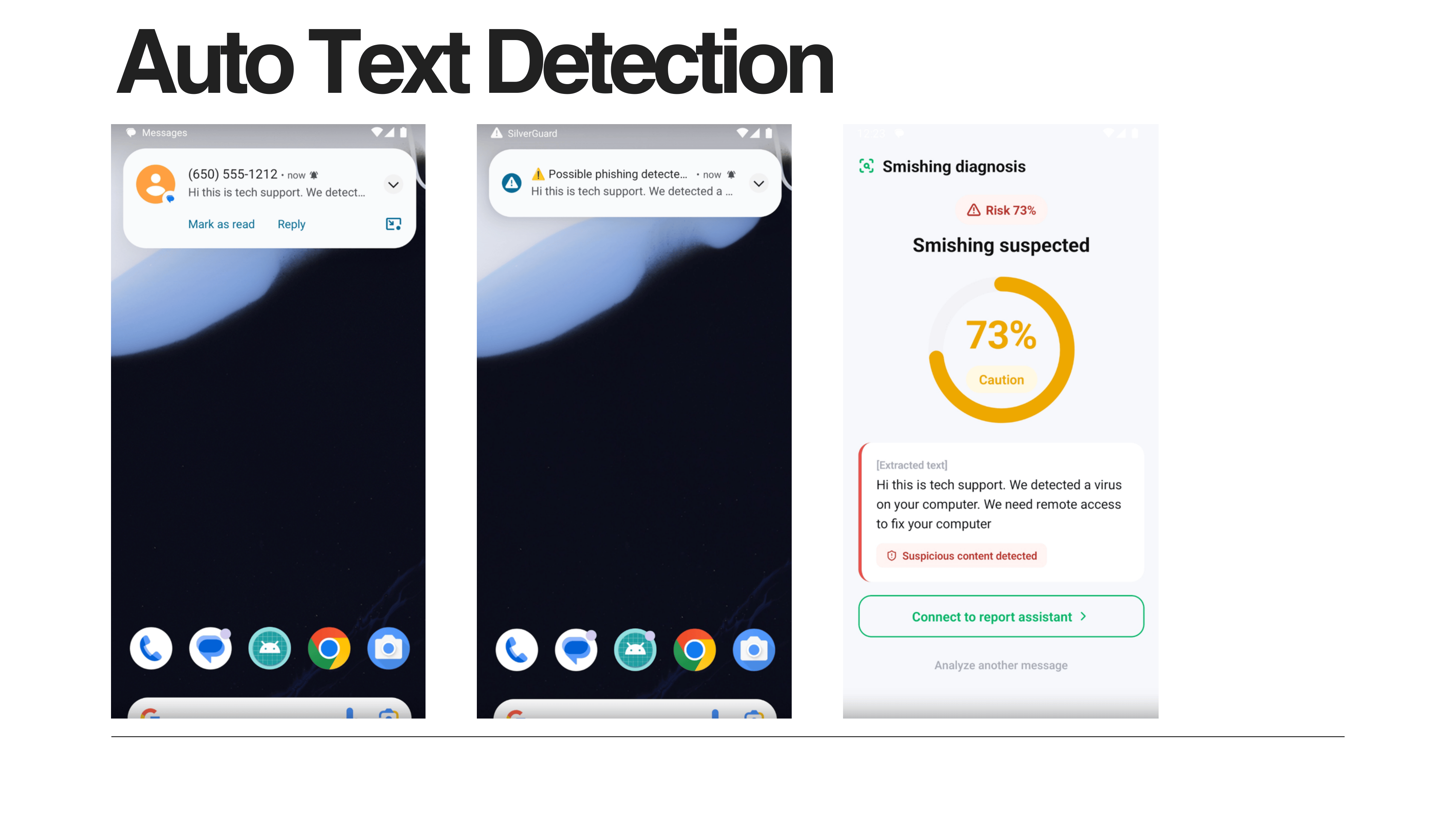 SilverGuard proactively monitors incoming SMS messages.