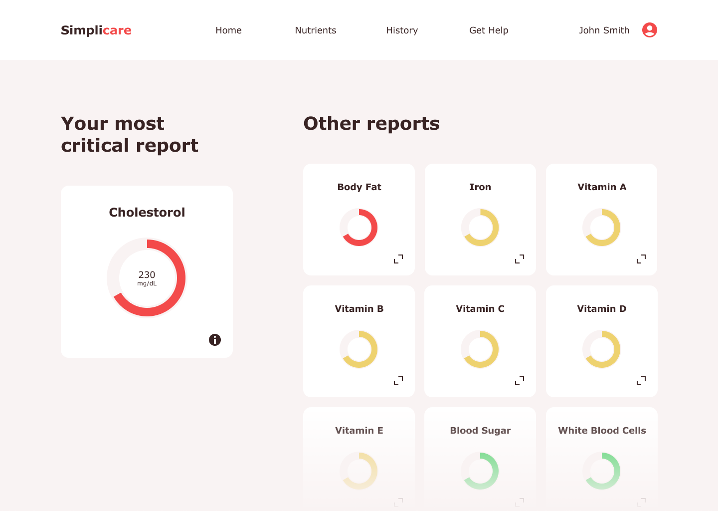 The web app would provide a simple interface for patients who recently had health checkups to easily access their results, with easy-to-digest information for each metric.