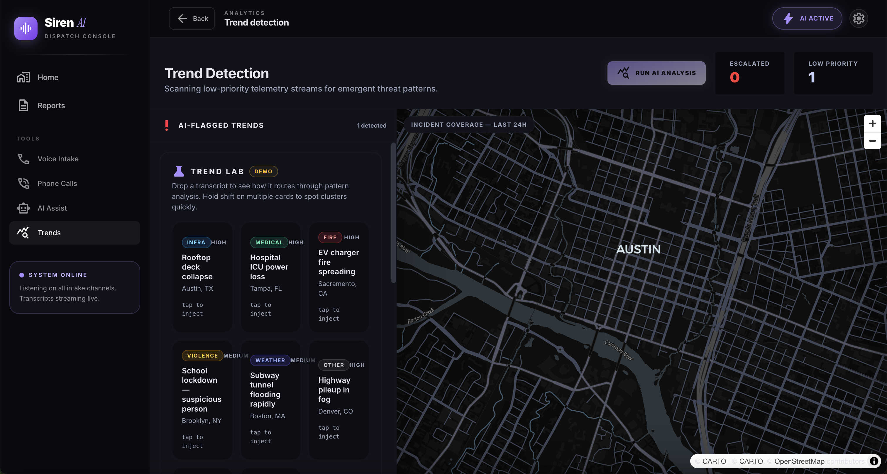 - Localized Context Engine: We trained the system on city-specific data, including local slang, common landmarks, and unofficial place names. Combined with GPS data, this allows the system to translate what callers say into precise, usable locations.