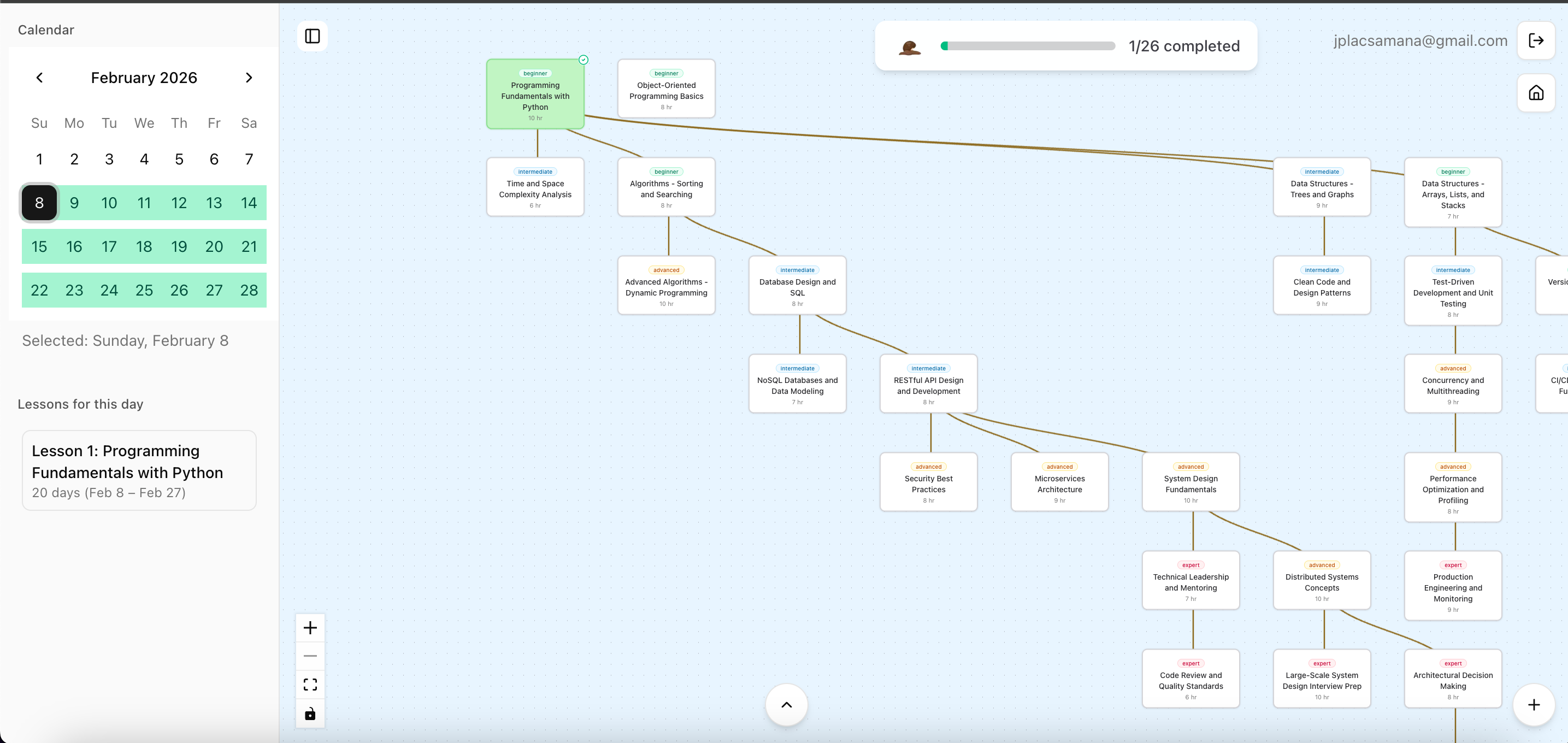 Our platform integrates the Claude API to generate personalized lesson plans and power the AI assistant that helps users refine their learning paths.