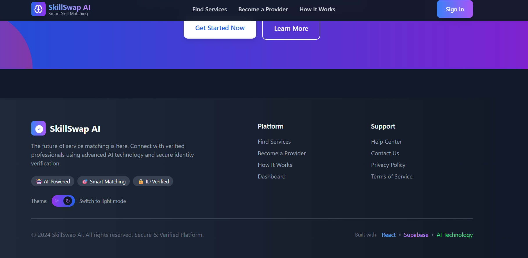 🌟 What Makes This Special SkillSwap AI is not just another service marketplace - it's a revolutionary platform that combines cutting-edge AI technology with robust security features to create the most advanced service-matching system ever built.