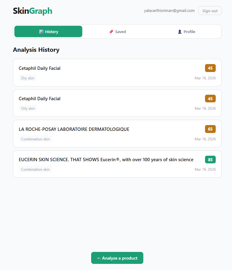 We built SkinGraph because we wanted a "dermatologist in our pocket." We wanted a tool where you could just snap a picture of an ingredient list and instantly know if it's safe for your specific skin type, if the brand's marketing is actually backed by science, and if there are cheaper products that do the exact same thing.