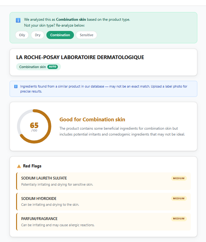 Another huge challenge was the OCR pipeline. Skincare bottles are cylindrical, reflective, and covered in tiny text. Getting Amazon Textract to cleanly pull a comma-separated ingredient list from a warped, glossy photo on a phone camera required a lot of trial-and-error with image preprocessing and fallback logic.
