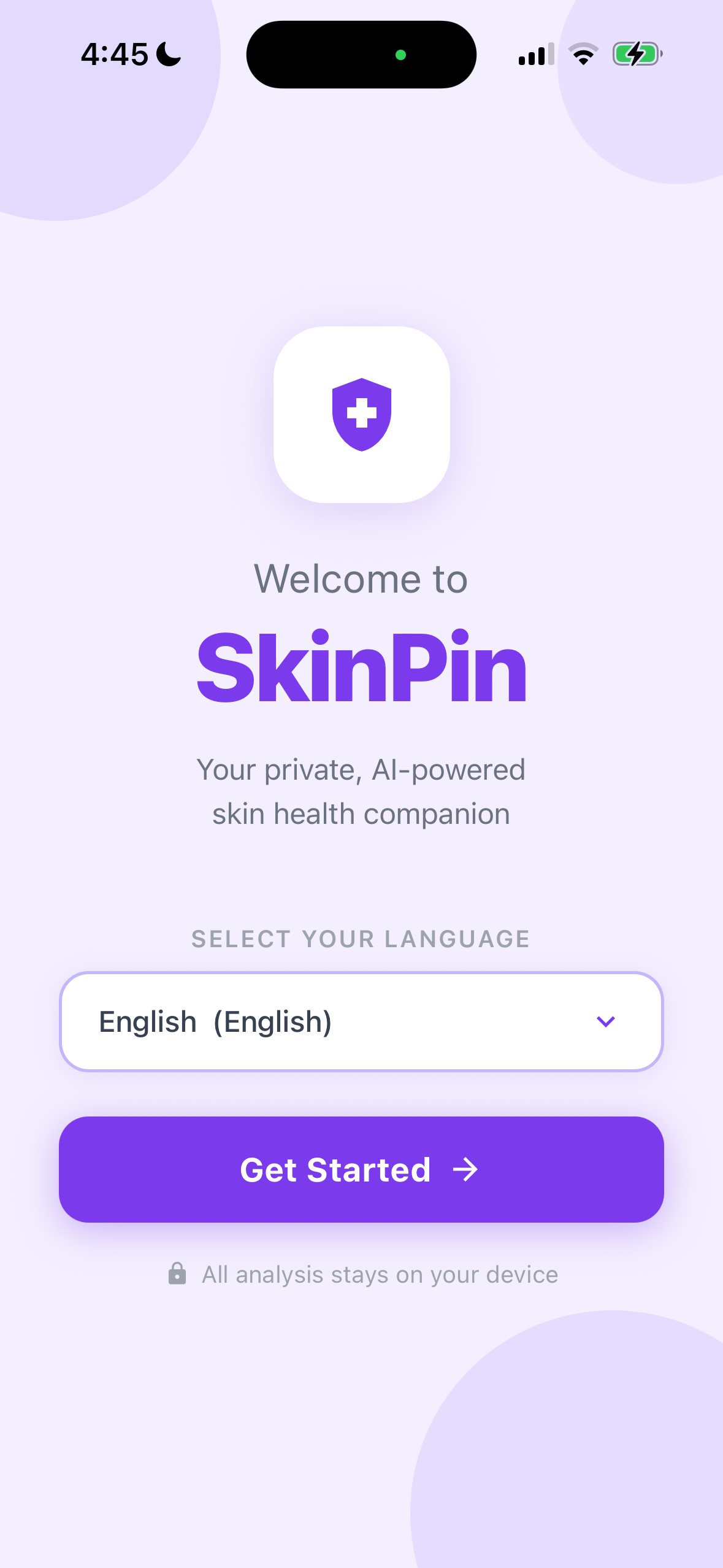 SkinPin is a fully on-device AI skin analysis app. You point your camera at any skin concern, and within seconds it classifies the condition across 30+ dermatological categories, from eczema and psoriasis to potentially malignant lesions, giving you a triage result: clear, monitor, see a doctor soon, or seek urgent care today. Everything runs locally on your iPhone. No photos ever leave your device.