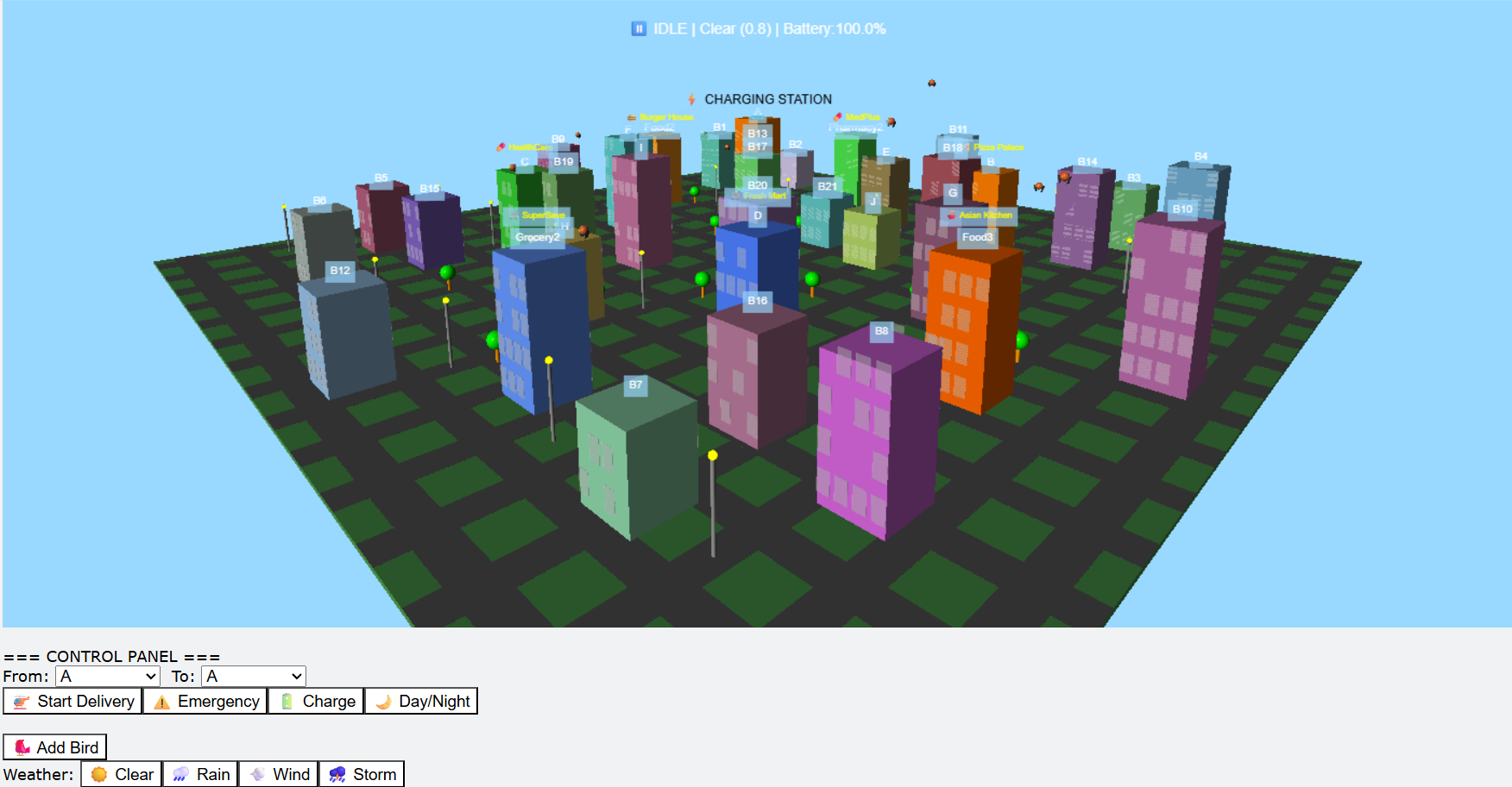 - Created a fully functional smart-city logistics simulation