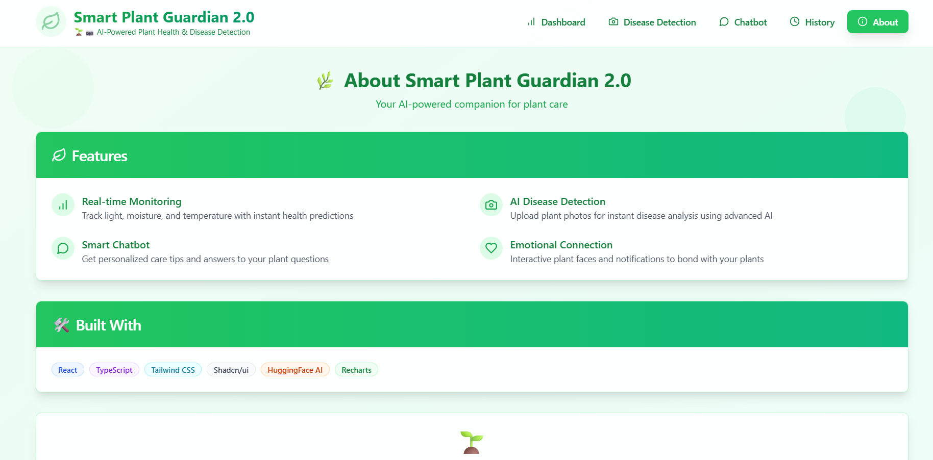 🌱 Inspiration The idea sparked from a simple thought: "What if our plants could talk?" Caring for plants can be confusing — yellow leaves, spots, wilting — and we often don’t know what they mean. As plant lovers, we wanted to build something that bridges the gap between humans and their green companions. With AI and visual detection, we turned that thought into Smart Bloom – AI Plant Health Guardian.