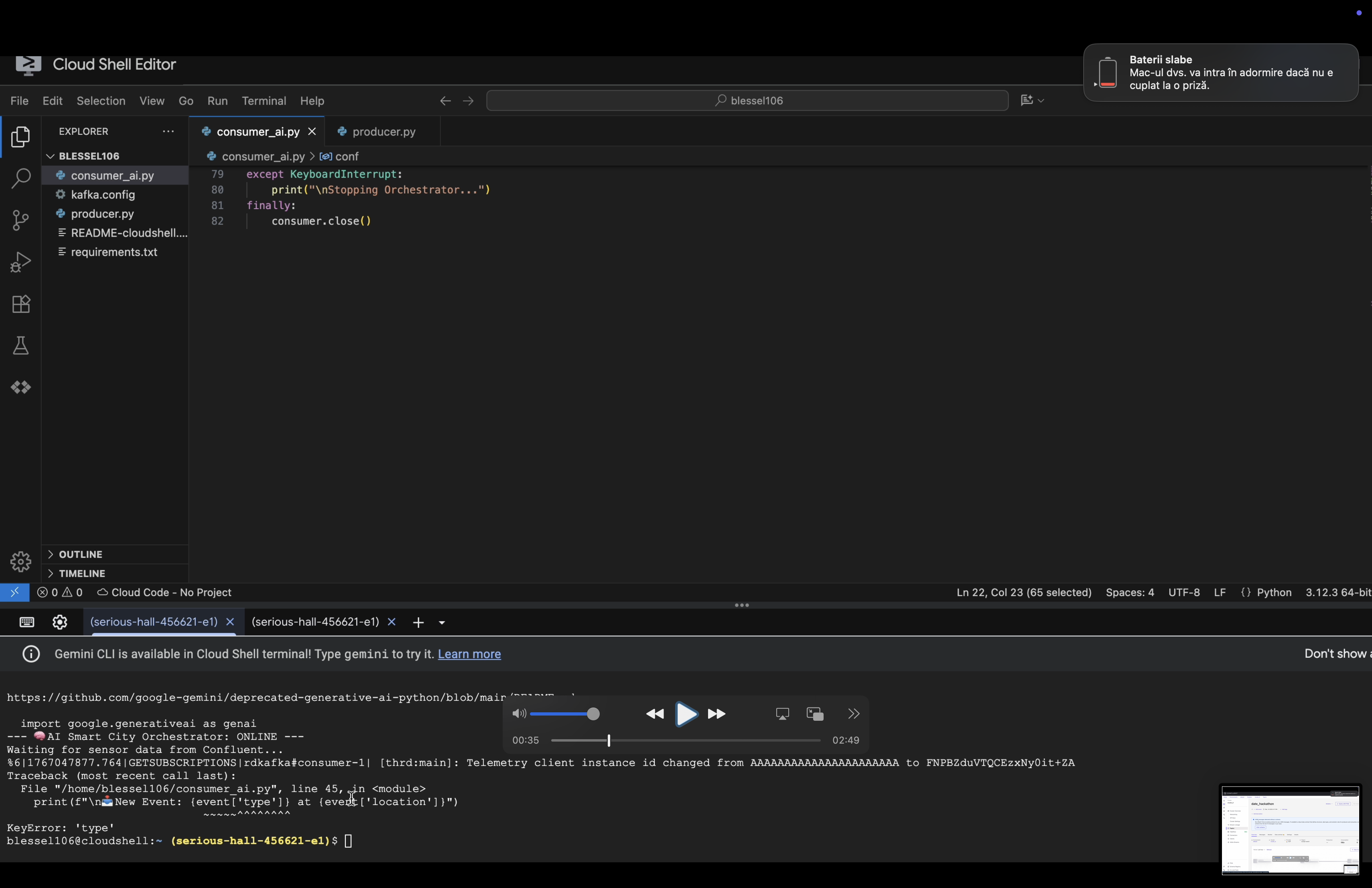 How we built it: A Python orchestrator connecting Confluent Cloud, Gemini 1.5 Flash, and ElevenLabs API.