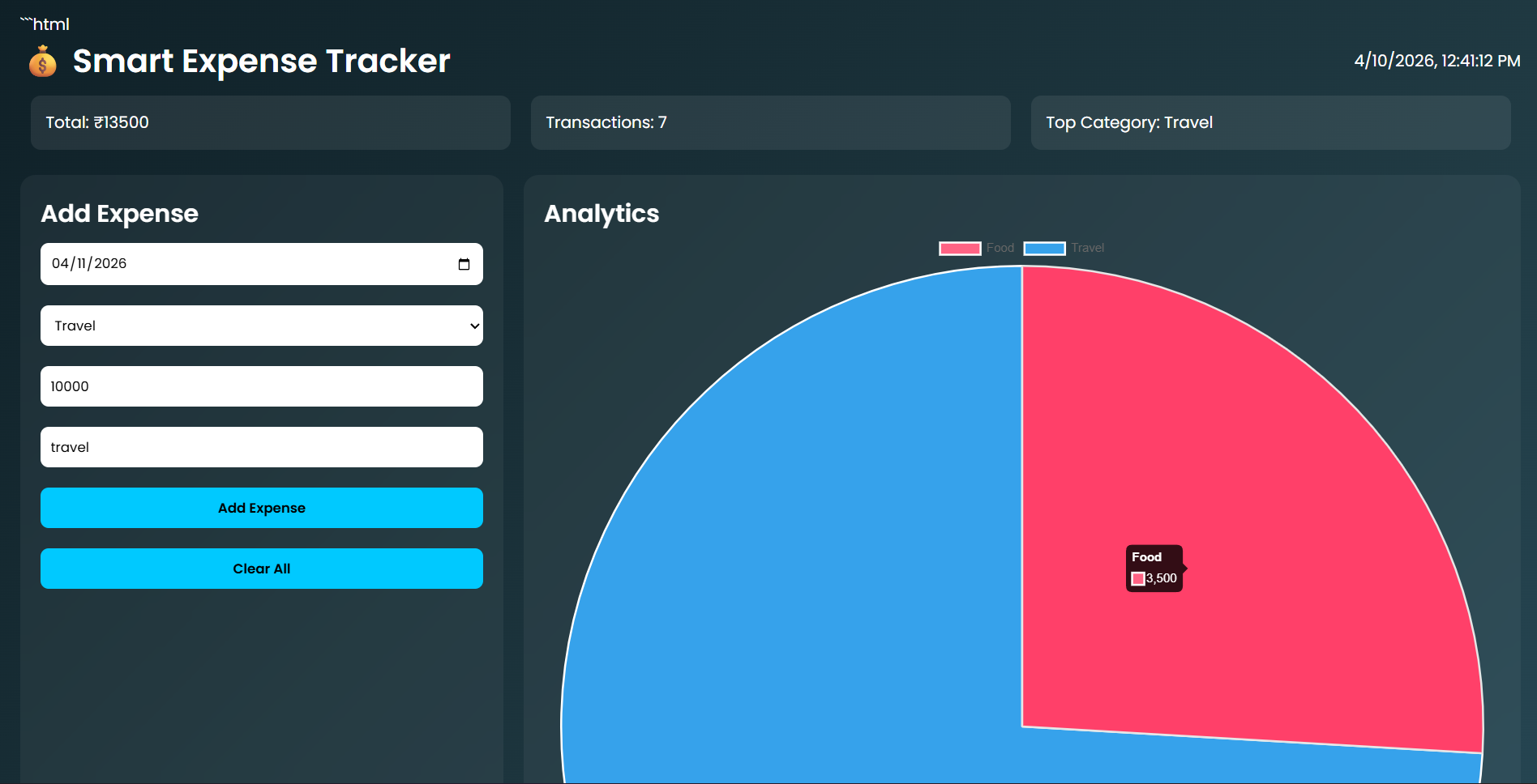 Smart Expense Tracker is an intelligent web-based application that allows users to: