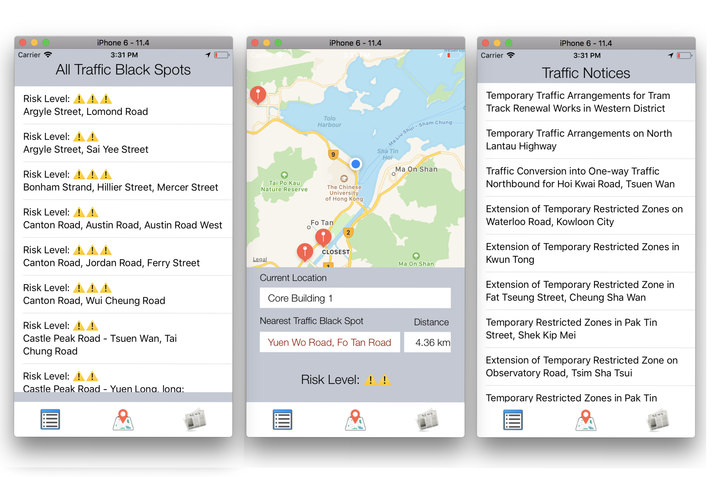 - All traffic black spots in Hong Kong listed on the map and show the distance of the closest black spots around you