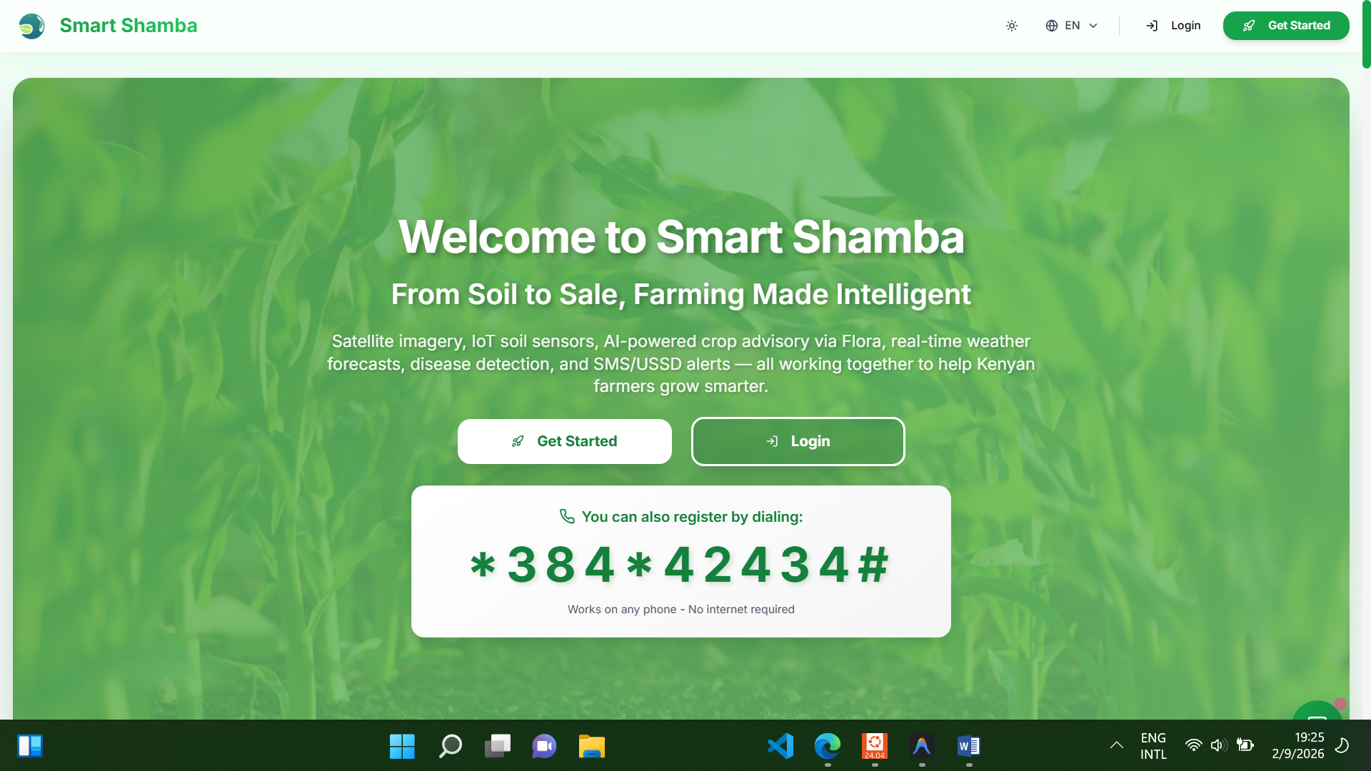 Smart Shamba is a Satellite-to-Shamba decision support system that democratizes access to precision agriculture. It synthesizes complex data from satellites, IoT sensors, and AI models into simple, actionable insights delivered via USSD (basic mobile menus) and SMS.