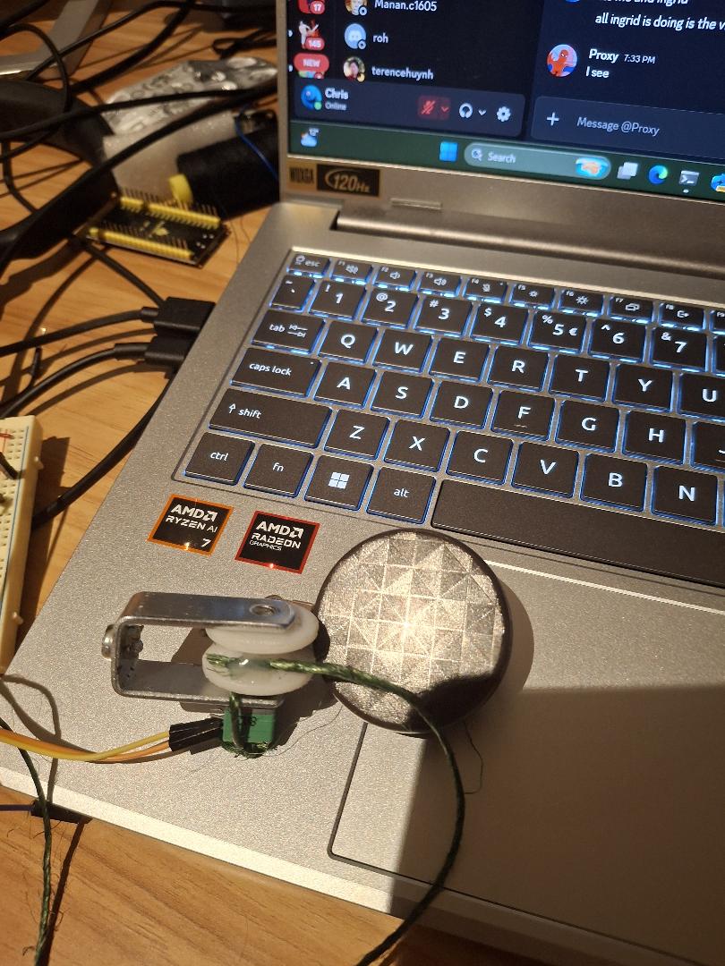 An ESP32 continuously reads the potentiometer and processes the signal into more than just angle data.