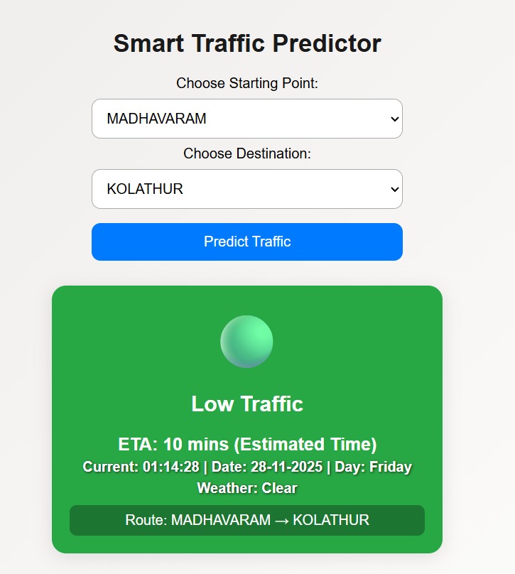 -- used csv files as storage for minimal amount of routes -- a lightweight ui to display the heavyness ofthe traffic --Connected everything with a lightweight backend that reads the CSV, runs the logic, and updates the output instantly.