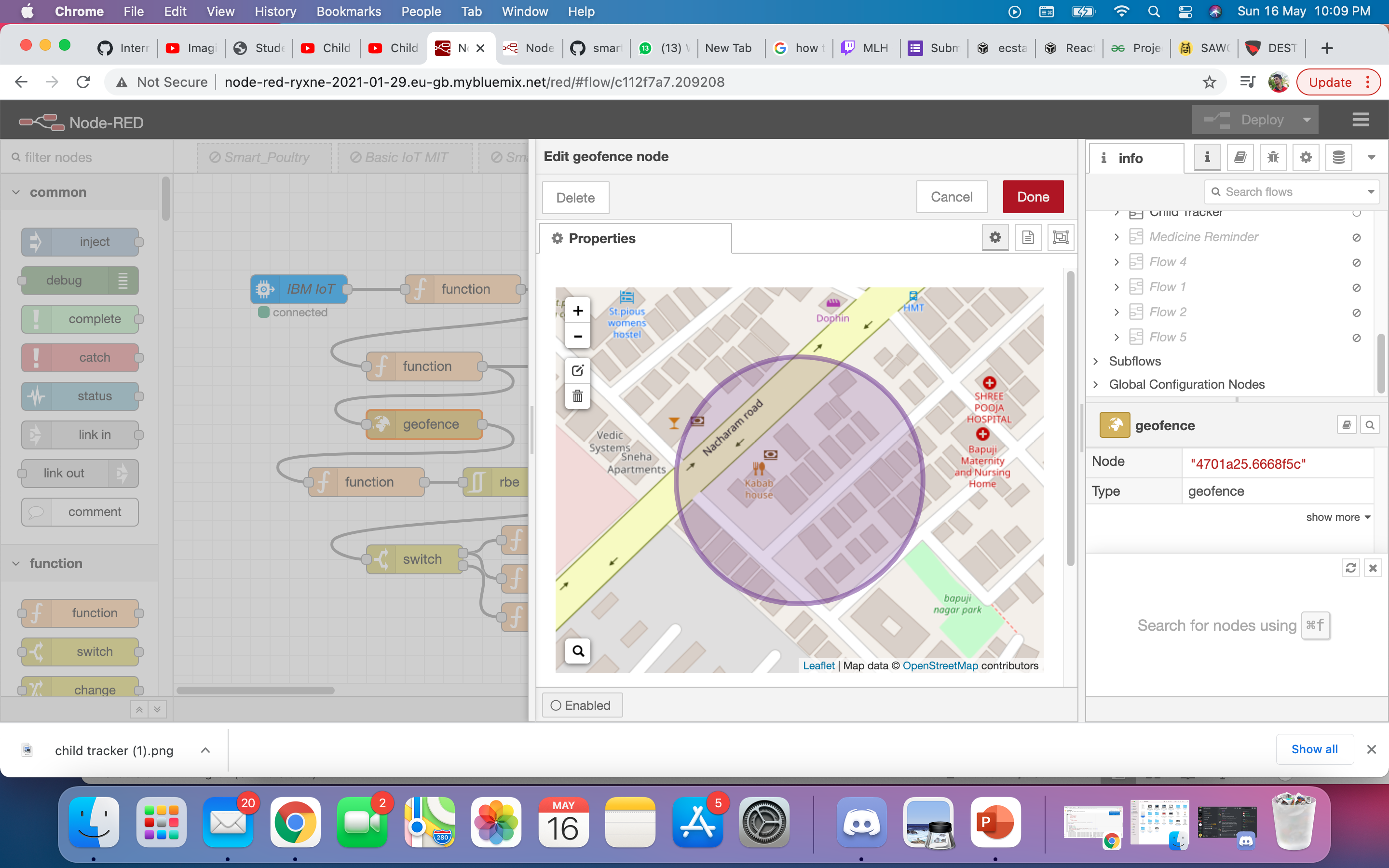 HARDWARE:- A GPS module integrated with the node-mcu or small wifi module like BOLT-IoT which takes small power to run properly and efficiently. This small device will be kept inside womens bag or attached to the wrist like the smart band. This will continuously send the location information to the IBM CLOUD.(But due to lockdown and time constrain I could not complete the hardware part and for the demo I will be pushing the data manually to the IBM cloud from google collab) SOFTWARE:-Now in the backend the IBM cloud will collect the data from the hardware through IBM Watson IoT and will process the data in the Cloudant DB and finally push it to the node-red. In the node red we had set a geo-fenching area, if cloud detects that the hardware is going outside the geo fench it will push a SMS through the FAST2SMS API and will let her guardian know about the thing. Moreover in the server it will also pin out the position if the device goes outside the GEO-FENCHING area. So, that everybody or the guardian can take action accordingly.