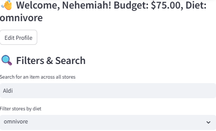 What we achieved We created a fully interactive grocery assistant that feels personal and professional. The app updates your lists instantly. It ranks stores intelligently. It presents information clearly and beautifully. It is ready to grow with real store data and advanced dietary analytics.