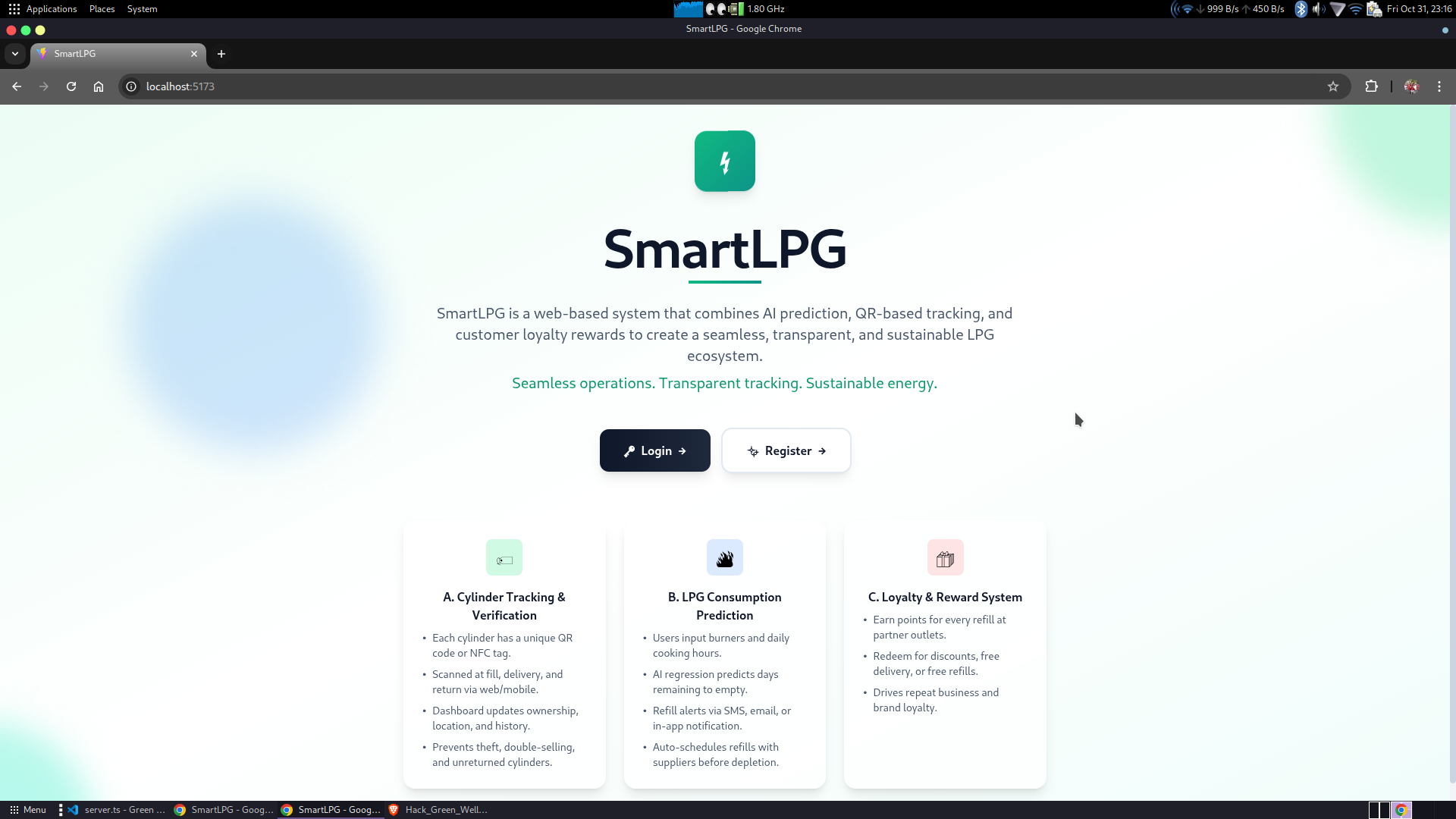 Gas cylinders often go missing due to poor tracking and manual record-keeping. This causes financial losses, customer frustration, and safety concerns. I wanted to create a solution that makes gas distribution more transparent and trustworthy. \textbf{SmartLPG} was born from the idea that simple digital tools can help both customers and suppliers gain visibility, reduce theft, and build stronger relationships through accountability and rewards.