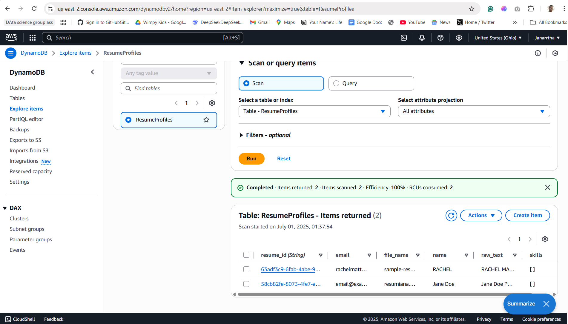 - Amazon DynamoDB – To store structured and searchable resume data.