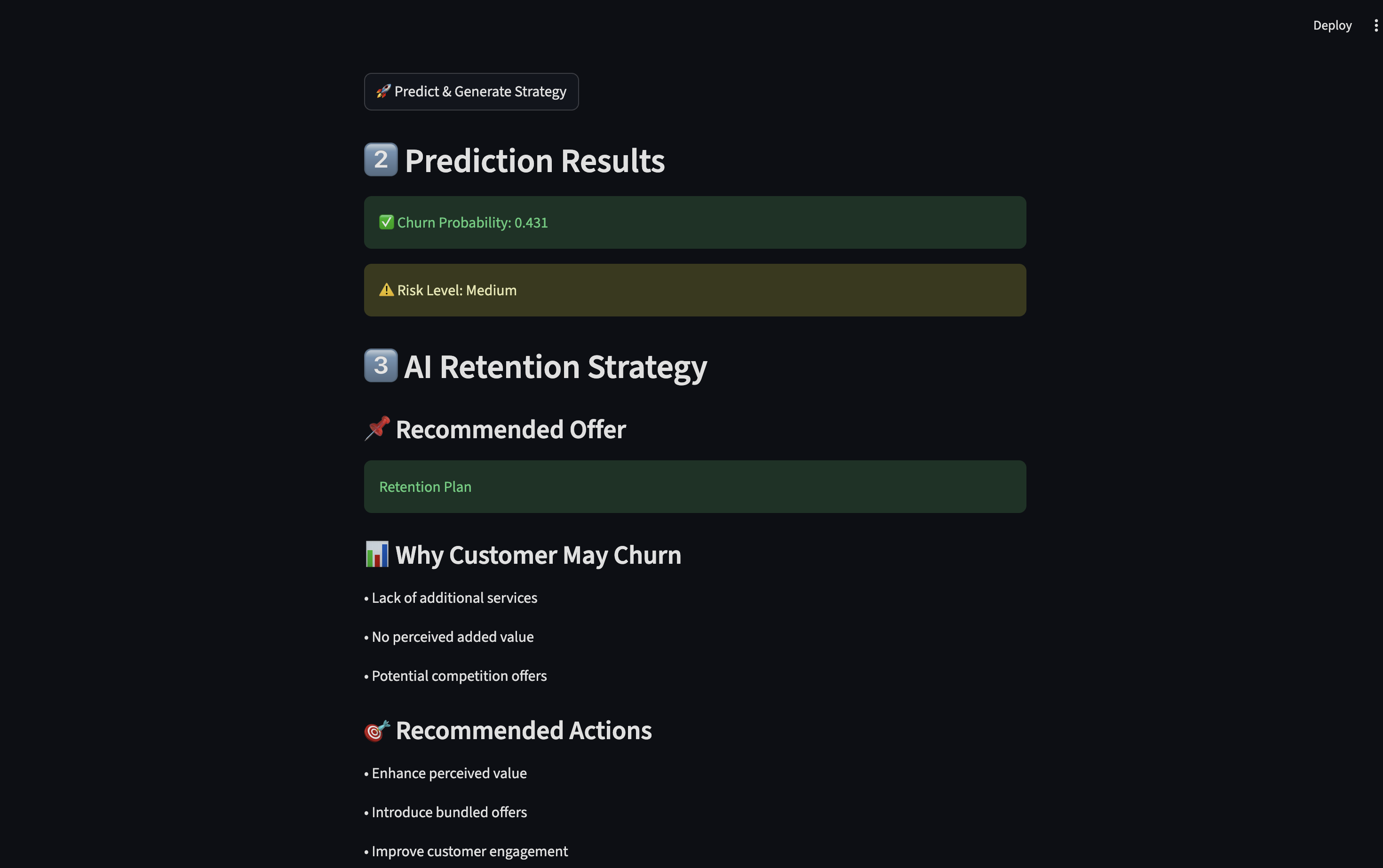 Inspiration: Customer churn is a challenge that almost every business faces, especially companies that depend on subscriptions or long-term customer relationships. While many tools can predict churn, they often stop there they don’t help businesses understand what actions to take next. I wanted to build something more practical. The idea behind SmartRetain-AI was to create a system that not only predicts which customers are likely to leave but also suggests personalized strategies to retain them using AI. In simple terms, I wanted to connect data science with real business decisions.