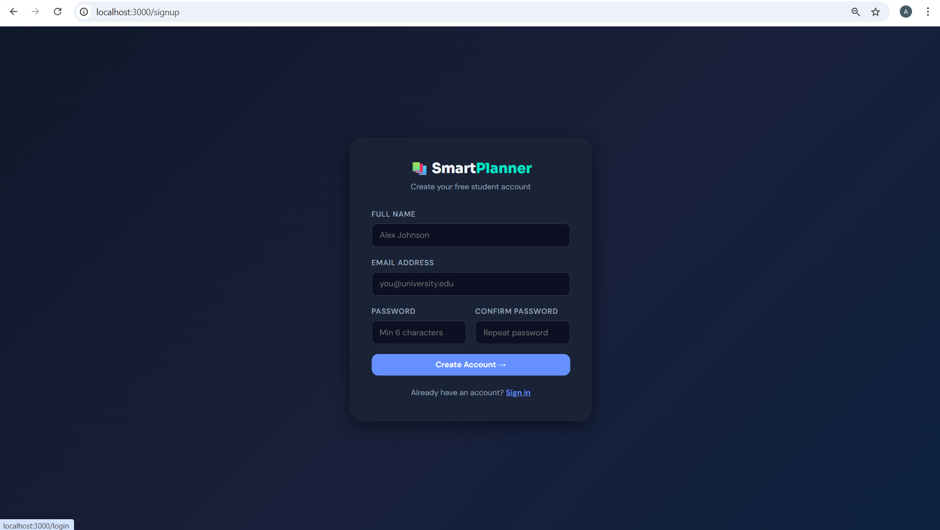 Smart Student Planner was built using a modern full-stack web development approach: