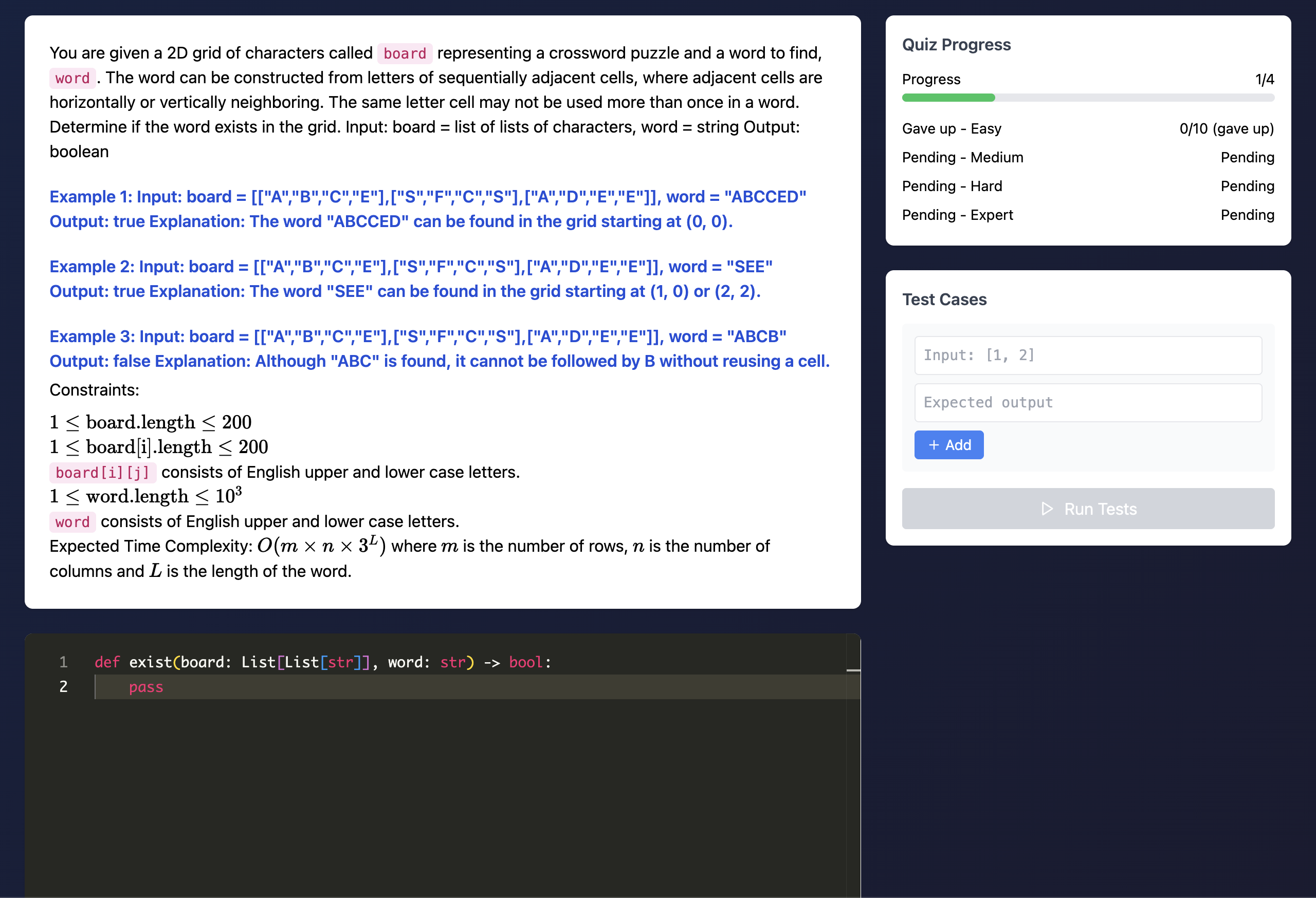 - Infinite Scenarios: Using Gemini-3, it generates unique problem sets and tests your ability to write algorithms and good code. Users can generate an infinite number of coding quizzes to test their abilities.
