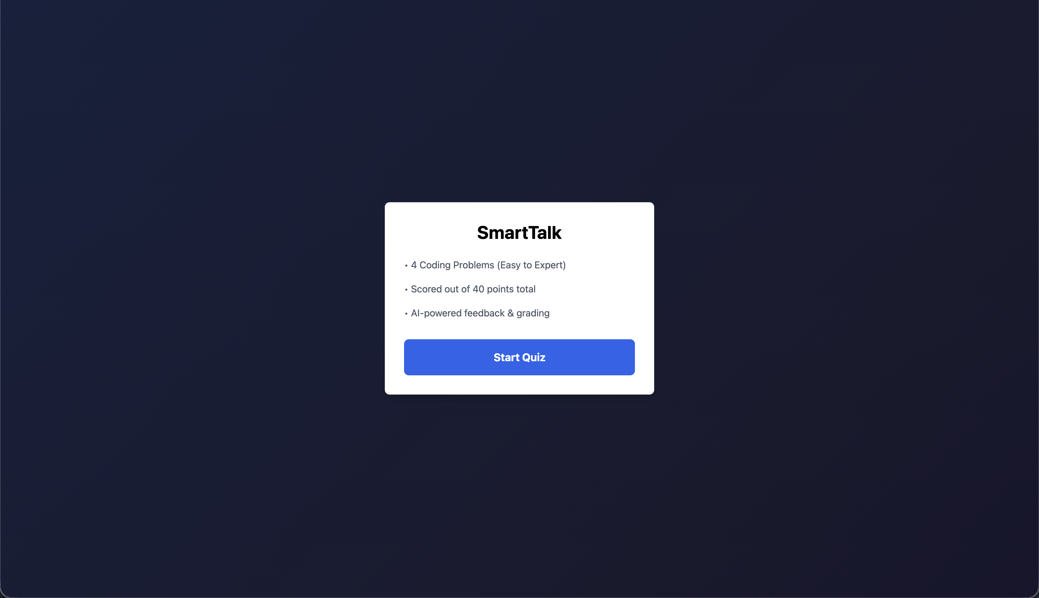 - Granular Feedback: After solving each question, SmartTalk provides feedback based on your code's efficiency, style, and what an interviewer might take away from your submission.