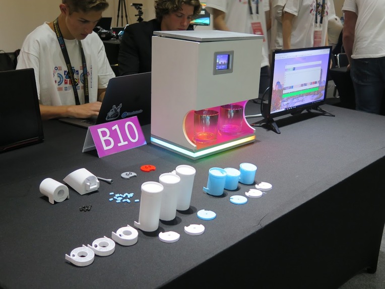 This product features 6 separate pill containers for all your different pills. It dispenses water along with pills for convenience using off the shelf water bottles. It also has customizable LED lights and built in speaker to announce when pills should be taken. On the product, there is a built in display for the user to see when pills need to be taken. The user can also ask Alexa, 'Alexa, when are my pills?,' as Smarty Pill has built in smart home integration. It is also cheaper than competing products on the market with similar feature sets. It is also extremely simple to use: Just set and stay connected. As multiple people can use this device, it's cost effectiveness is a major improvement over other existing products. By having a modular design, it allows the user to buy pill containers for just the pill types they need, saving money when they buy this product, but also down the line if their perscription changes, as they do not need to buy an entire new device. The uniqueness of this product is evidenced by the fact that it was chosen as a finalist in the China US Young Maker Competition. We believe that this product has the potential to be applicable to not just senior citizens, but any adult or child with an illness or disease that requires them to take many medications, multiple times a day. In addition, a companion app is also being developed that will allow family members and physicians to monitor and keep tabs on the patient's device, to make sure that medication is being taken when the device notifies the patient, and that there is no medication abuse by the patient.