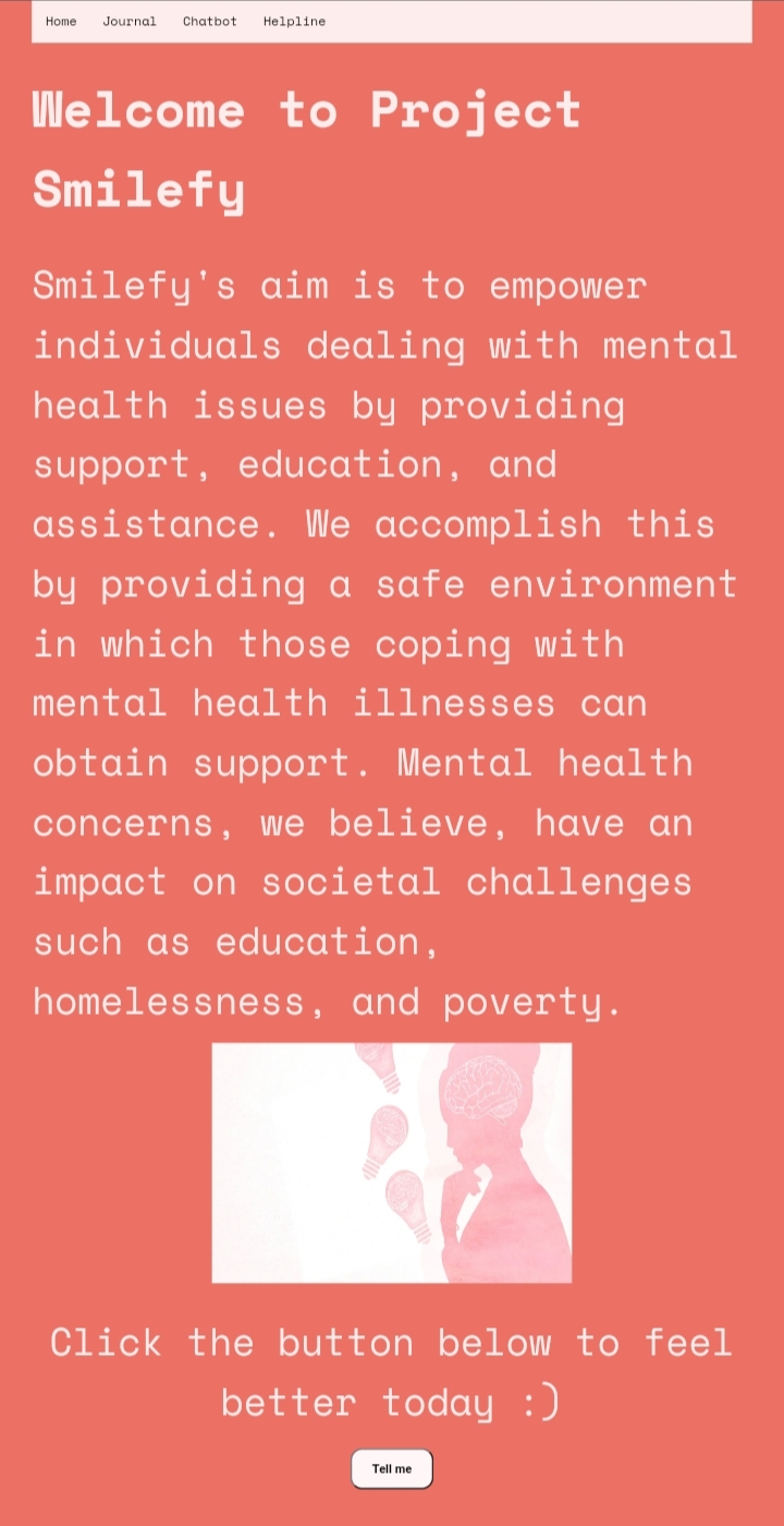 I've lost friends and family members to suicide. Losing someone you care about is heartbreaking, and no one deserves to go through it. My goal through Smilefy is to increase awareness about the importance of one's well-being and to provide a secure environment for everyone to open up to.