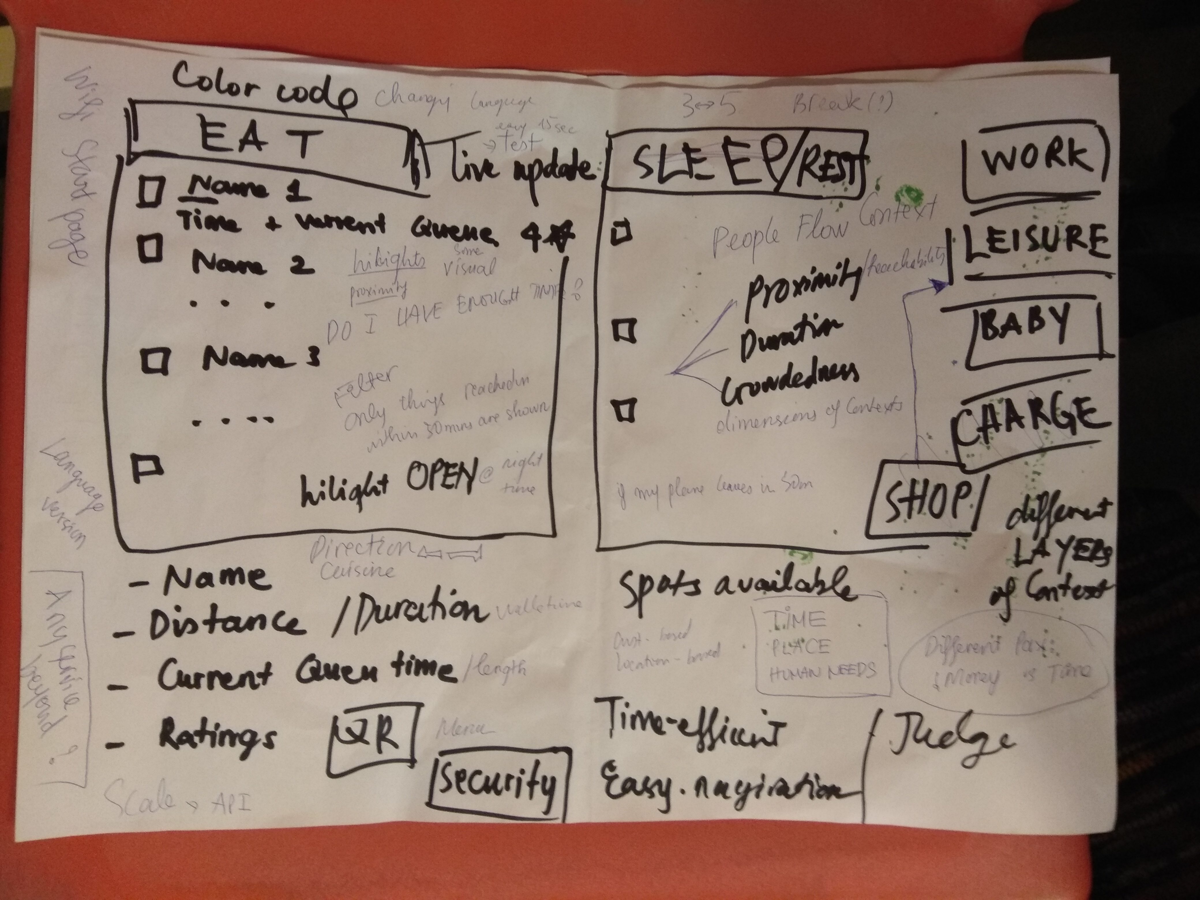 We arrived at several cool ideas regarding 1) improvement of spatial environment by boosting the comfort design of the facilities and architectures or 2) injecting cultural elements to turn Helsinki airport into a gateway to Finnish culture to attract passengers from other cultures, 2) improvement of passengers feelings through airport help, 3) information access and update to de-stress passengers.