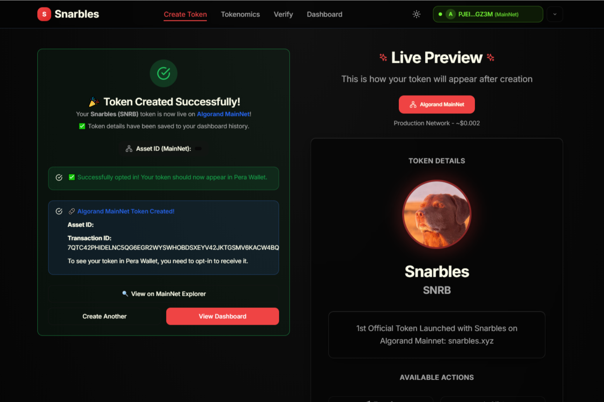 - Created working Algorand token creation in production environment