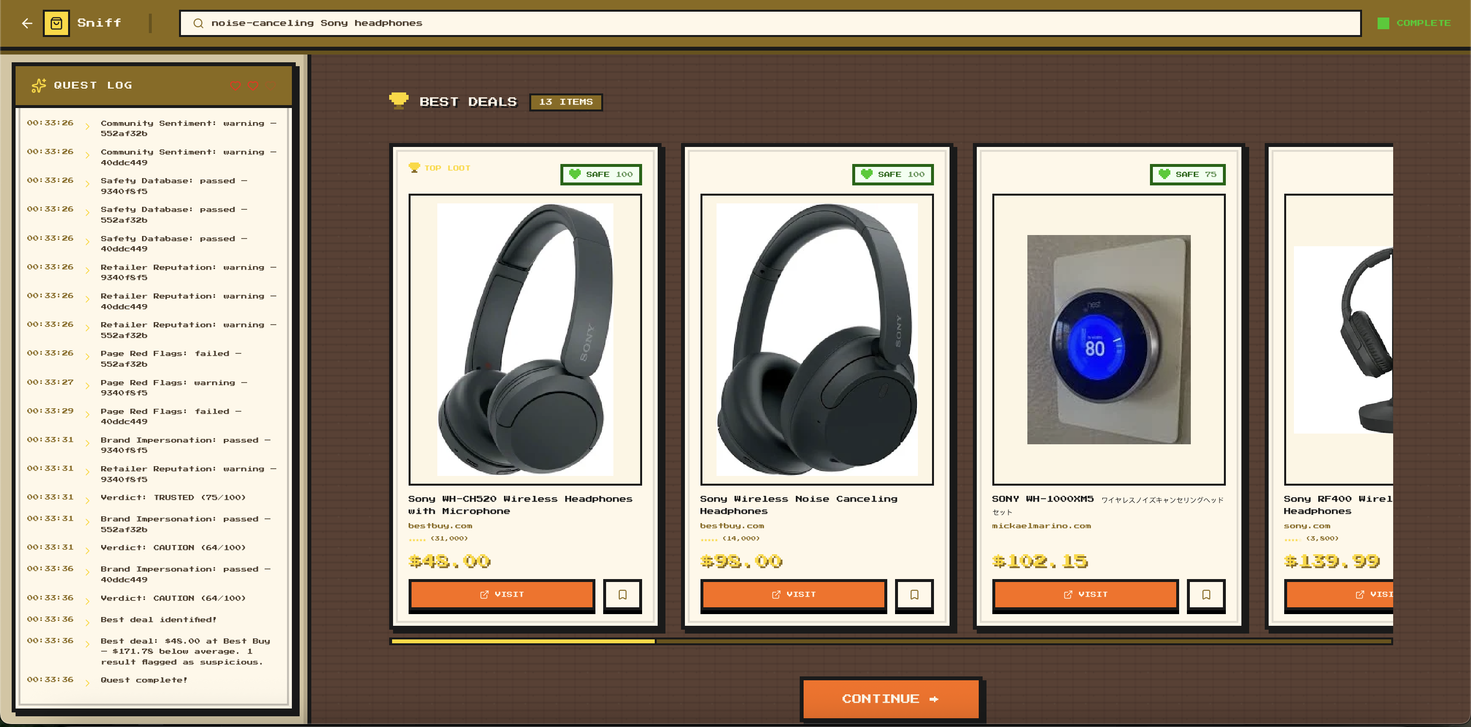 We built Sniff to close that gap: turn safety from a burden into an automatic agentic layer of commerce without sacrificing price intelligence.