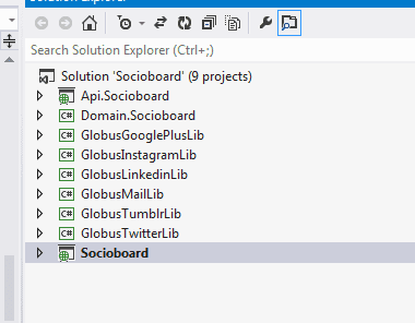 - Once you load the project in visual studio, you have see a solution structure with following projects.