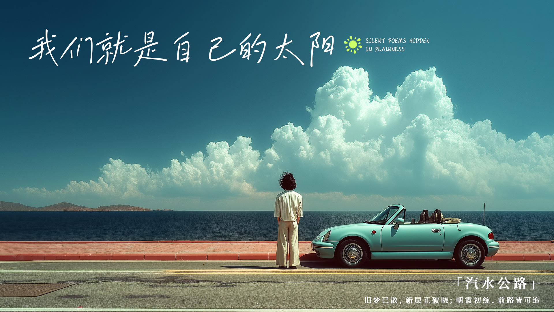 - On the final, powerful line, "Right now, we are our own sun!", the car stops at a cliff overlooking the ocean. The two protagonists get out and stand together, silhouetted against the brilliant, rising sun. They are no longer chasing the light; they are the source of it.
