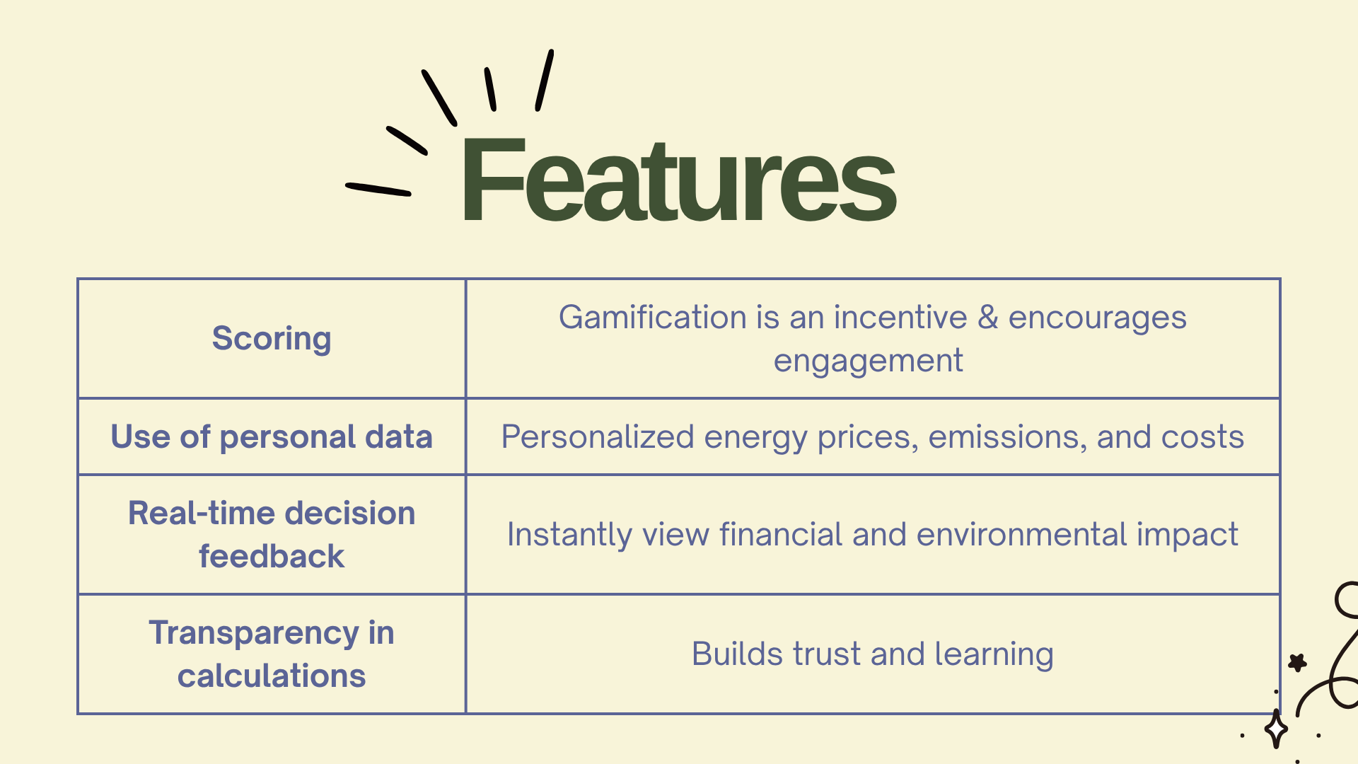 Climate action often feels abstract and disconnected from everyday life. Teens and young adults rarely see how their energy decisions affect their wallets or carbon footprint in real, concrete terms. Existing tools influence your decisions without data clarity or outcome impacts. Moreover, there is no concrete clarity regarding solar power decisions, upfront cost, future opportunity cost or even bureaucratic barriers like permit approval lag. We wanted to build something that makes these results immediate, personal, and easy to understand, especially for teens and young adults who are rarely exposed to real financial or energy decision-making.