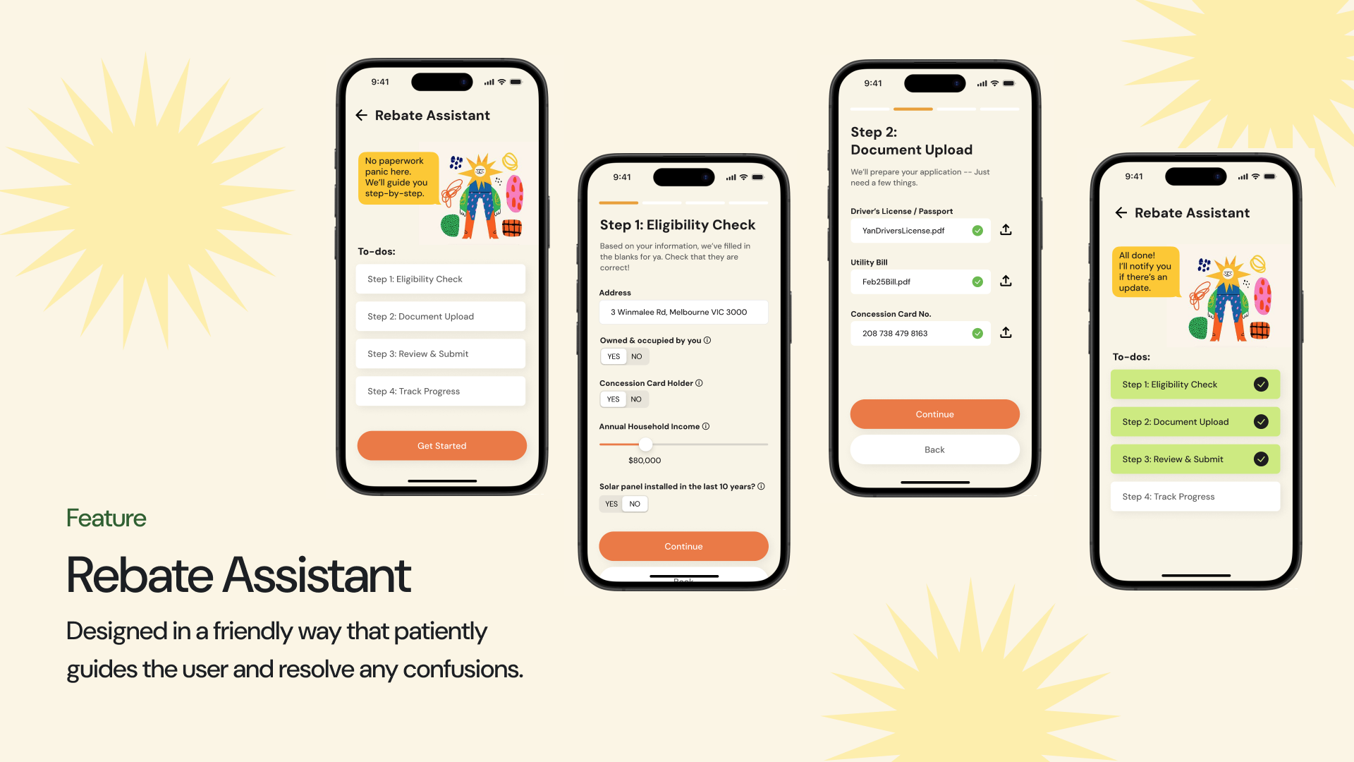 - step-by-step guidance on government rebate applications with a built-in assistant