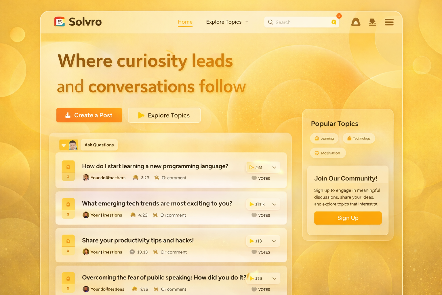 Solvro is a community-based discussion platform that allows users to create posts, engage in conversations, share opinions, and discover diverse perspectives. Users can explore different topics, interact through comments, and participate in discussions that evolve organically. It focuses on making content discovery intuitive while encouraging genuine interaction.