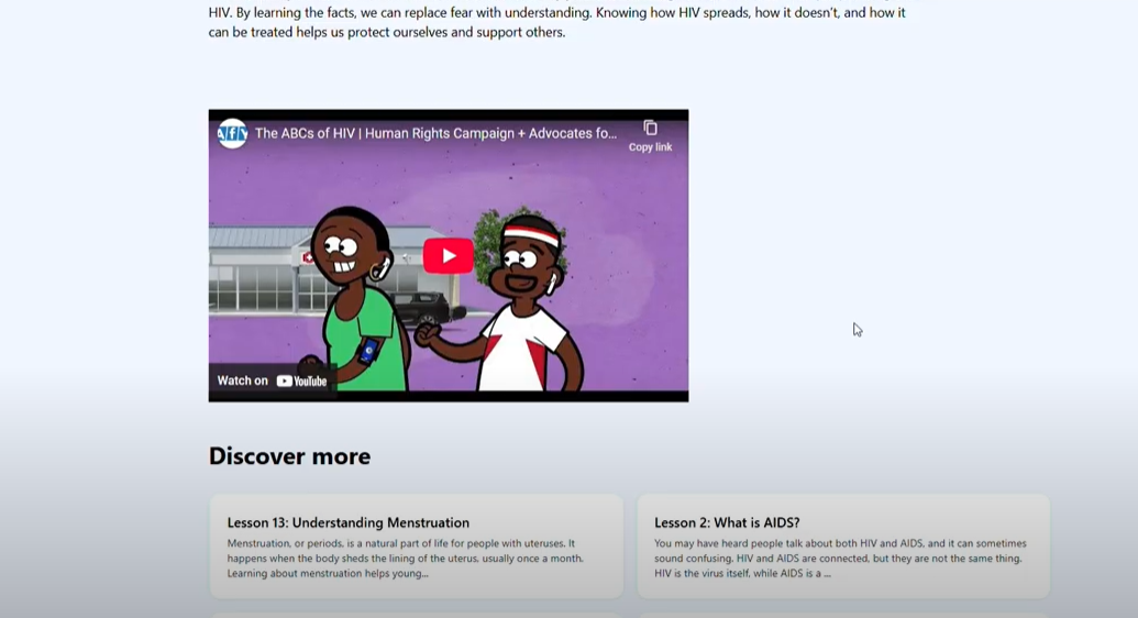 This project taught us that for health education tools, privacy and empathy are just as important as accuracy. We learned how to use multiple AI models effectively, using each model’s strengths and learning its weaknesses. We also saw firsthand how pre-curated content dramatically improves both safety and user trust. On the technical side, we gained experience in building lightweight, mobile-friendly apps that can handle multilingual content, work with Firebase, and remain usable even under low-bandwidth conditions.